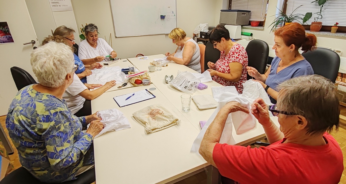 Na delavnicah osvojijo tri tehnike vezenja, se posvetijo natančnemu izrezovanju obšitih vzorcev, ter pripravijo čudovite izdelke.