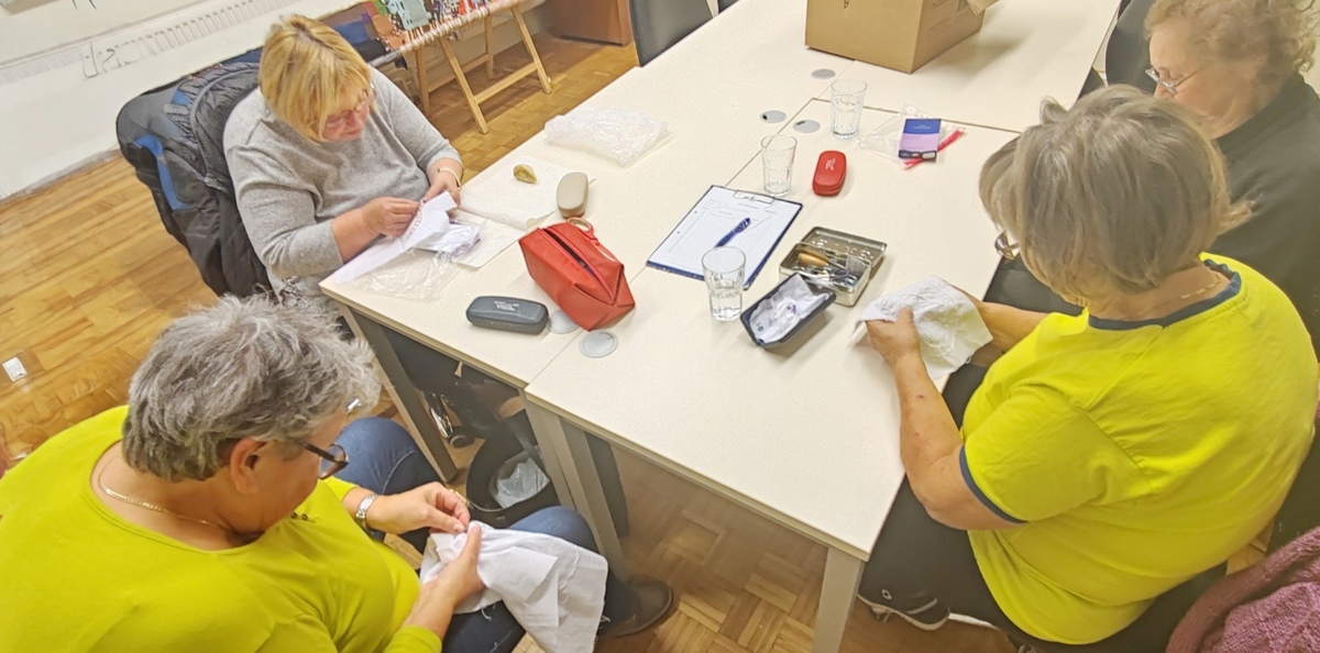 Na delavnicah osvojijo tri tehnike vezenja, se posvetijo natančnemu izrezovanju obšitih vzorcev, ter pripravijo čudovite izdelke.