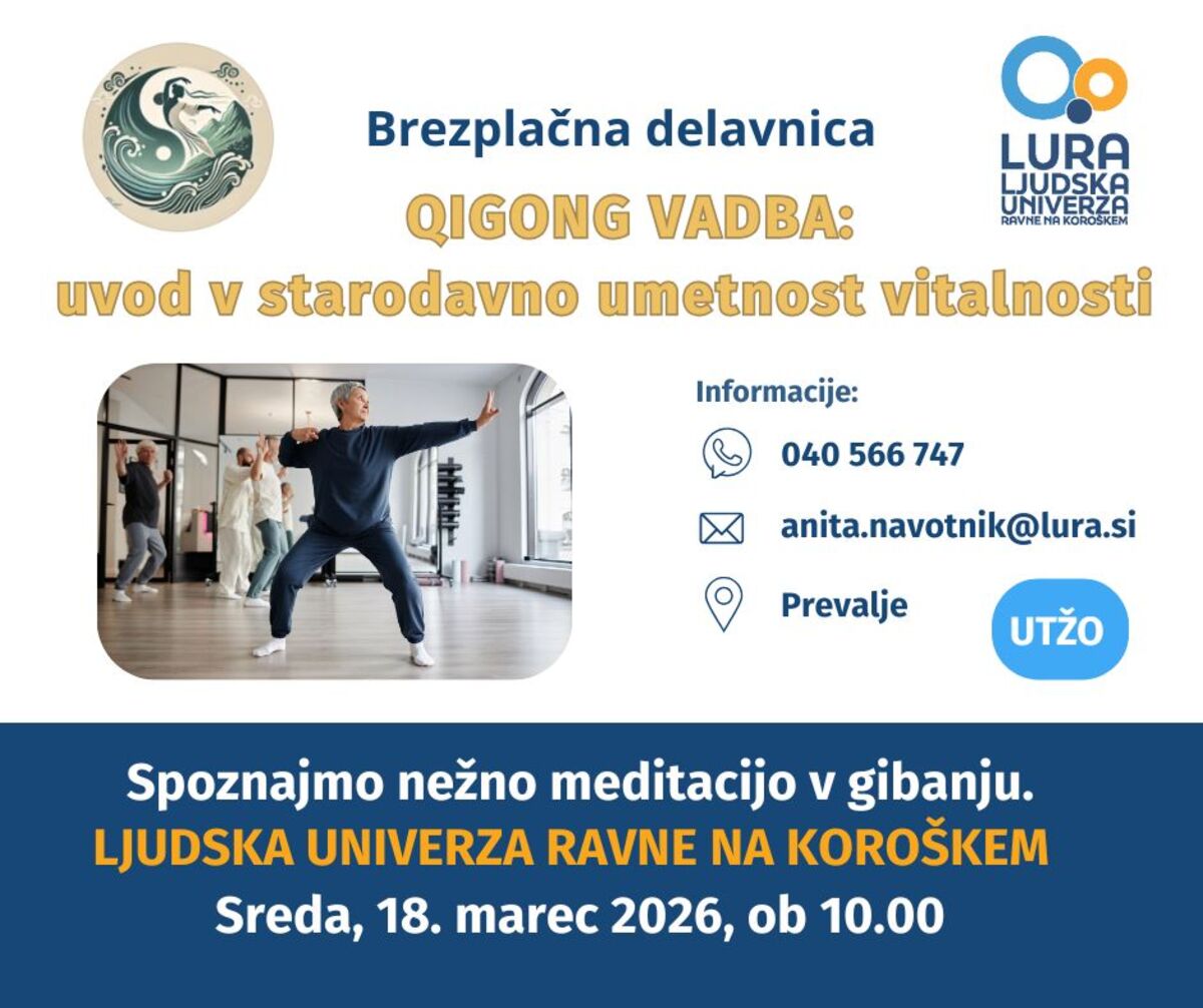 Vabljeni na uvodno delavnico qigonga, kjer boste na preprost in dostopen način spoznali temelje te več tisoč let stare kitajske prakse za podporo zdravju in notranjemu ravnovesju. Qigong povezuje počasne, zavestne gibe, usmerjeno dihanje in zbrano pozornost. Njegov namen je uravnavanje življenjske energije qi, krepitev telesa ter umirjanje uma. Izvira iz tradicij taoizma, budizma in tradicionalne kitajske medicine, kjer je služil kot metoda za ohranjanje vitalnosti in dolgoročne stabilnosti telesa ter duha.