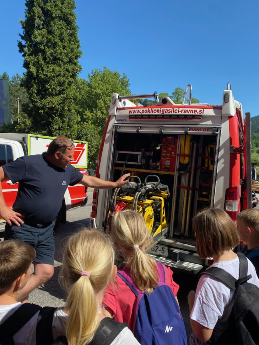 V četrtek so se podali v svet poguma in pomoči – obiskali so ravenske gasilce. Navdušeni so si ogledali gasilsko vozilo, ki jih je celo zapeljalo po mestu, spoznali so opremo in notranjost gasilskega doma ter si za piko na i nadeli pravo gasilsko čelado.