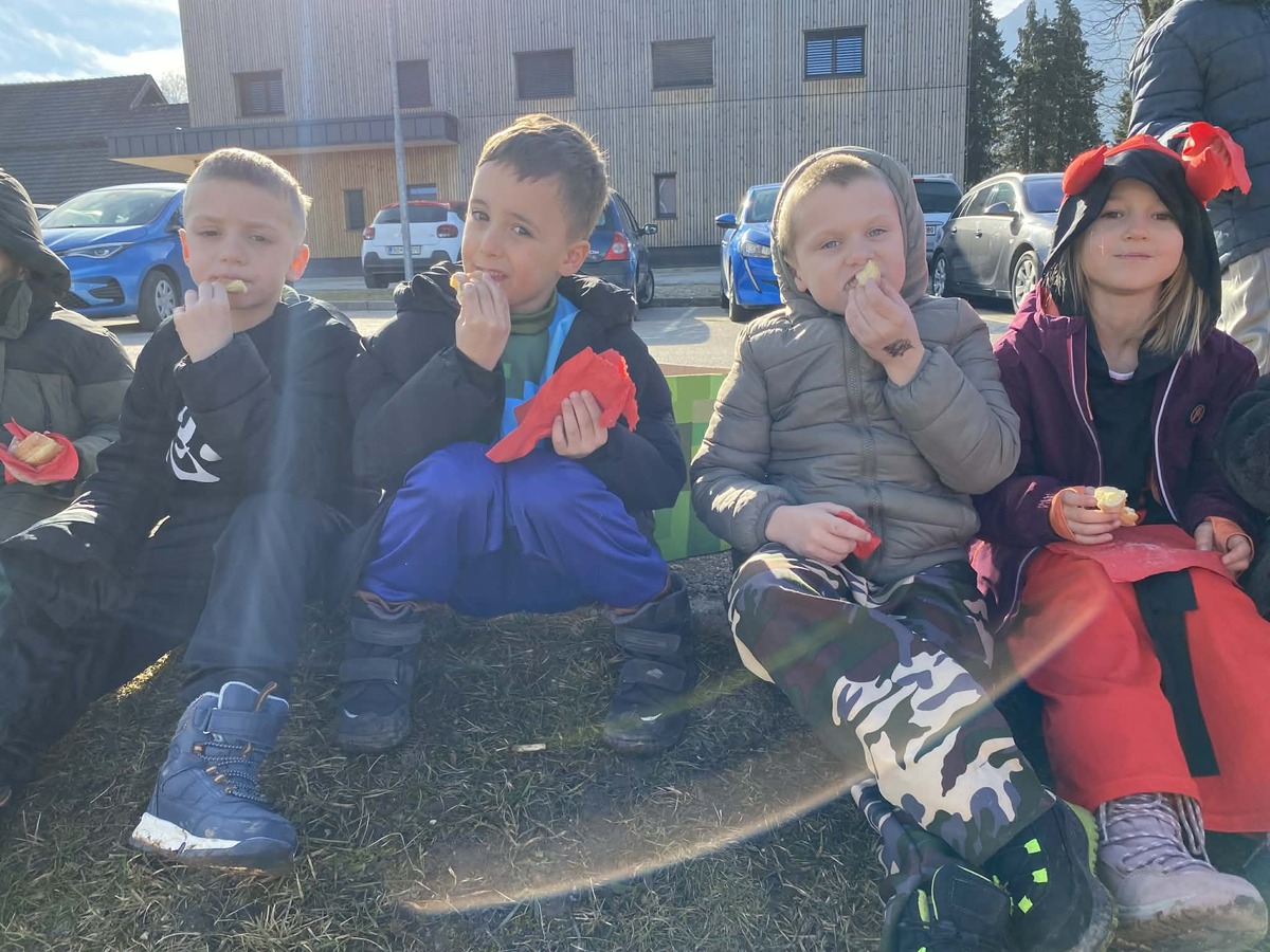 Posebno vzdušje so ustvarile članice pogovorne skupine Seniorke iz Kotelj, ki so obiskovalce pogostile s toplim čajem in krofi, za katere je poskrbela Krajevna skupnost Kotlje. Pustne šeme in živahno petje so odmevali po vasi, ob zvokih harmonike in prepevanju pesmi pa so otroci v spremstvu vzgojiteljic, učiteljic in odraslih simbolično premagovali zimo ter pozdravljali prihajajočo pomlad.