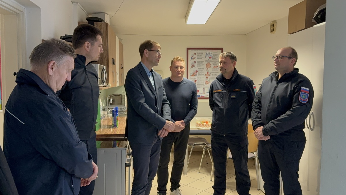 Župan dr. Tomaž Rožen s svojo ekipo čestital nagrajencem Civilne zaščite - Koroškemu gasilskemu zavodu in namestniku poveljnika Štaba CZ Občine Ravne, Borisu Večku