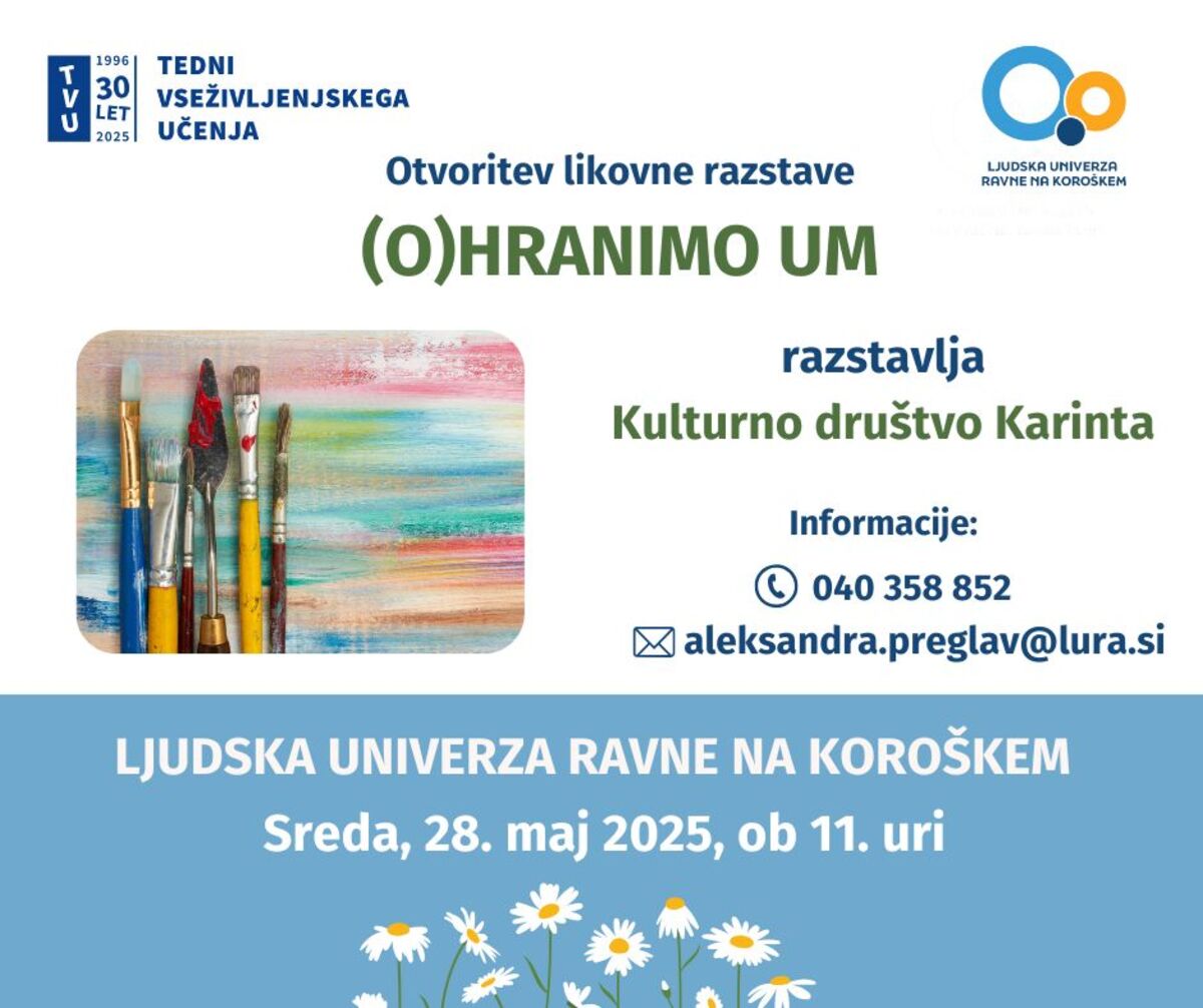 Otvoritev razstave bo v sredo, 28. 5. 2025, ob 11. uri, na hodniku Ljudske univerze Ravne na Koroškem.