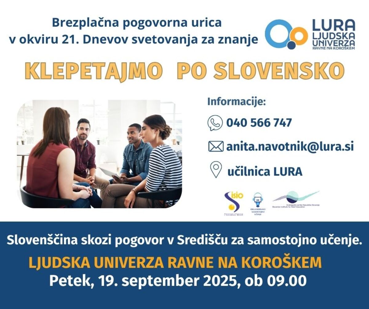 V okviru 21. Dnevov svetovanja za znanje vas vabimo na brezplačno pogovorno urico v slovenščini, ki bo potekala v našem Središču za samostojno učenje.