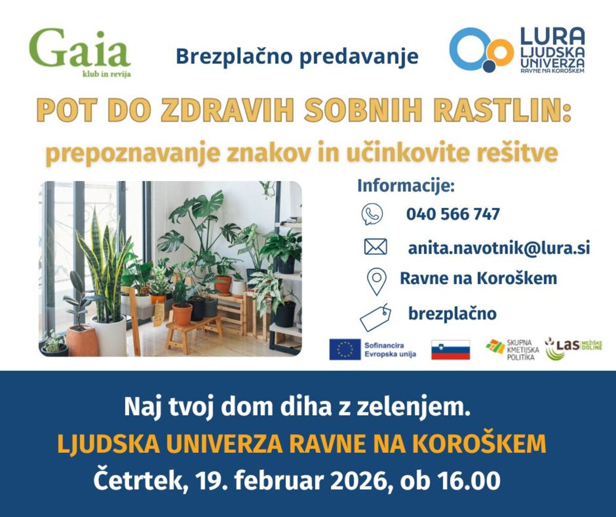 Predavanje bo potekalo na Ravnah na Koroškem, v četrtek, 19. februarja 2026, od 16. do predvidoma 17.30 ure, točno lokacijo sporočimo naknadno.