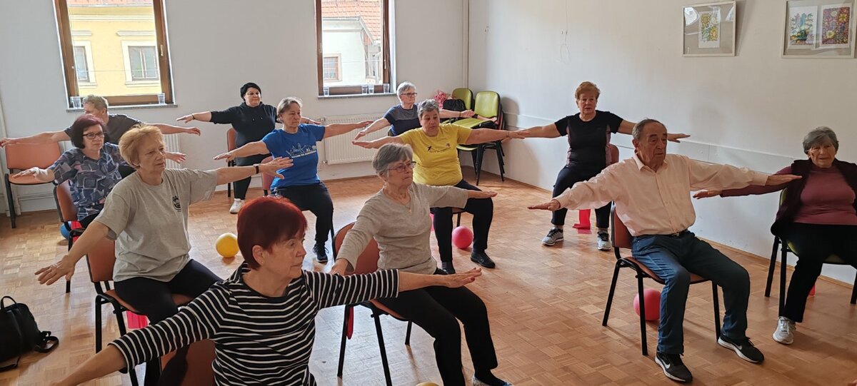 Udeleženci vadijo sede in stoje s poudarkom na krepitvi mišic, ravnotežja, gibljivosti in koordinacije. Pri vajah uporabljajo ježkaste žogice, žoge in elastične trakove za krepitev mišic.