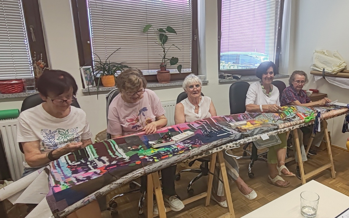 Članice šivajo 3x2m velik, mega gobelin, ki je leta 2023 na Poljskem na razstavi, od 500 prijavljenih prišel v ožji zbor 50ih in dosegel zavidljivo 3.mesto. Počasi ga zaključujejo.