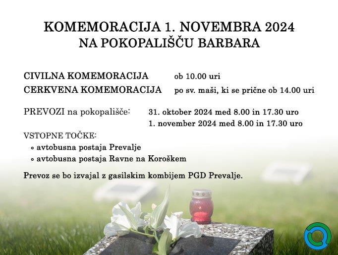 Obveščamo vas, da bomo med prihajajočimi prazniki organizirali brezplačne prevoze na Pokopališče Barbara iz Raven in Prevalj.