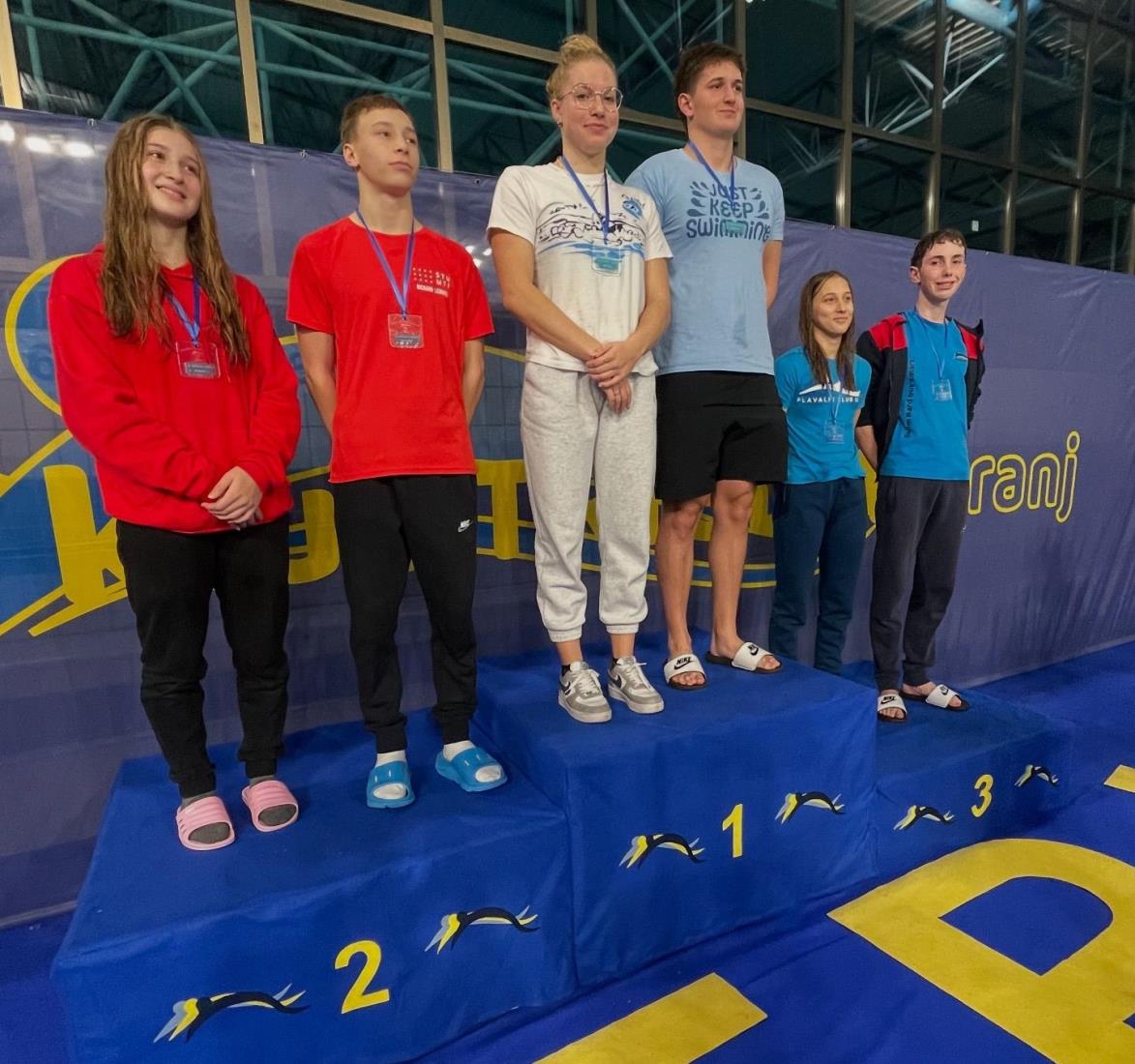 Zara Podržavnikna 400 metrov prosto, Nija Gerdej na 50 metrov hrbtno in 100 metrov prsno ter Marcel Metulj na 100 metrov prsno.