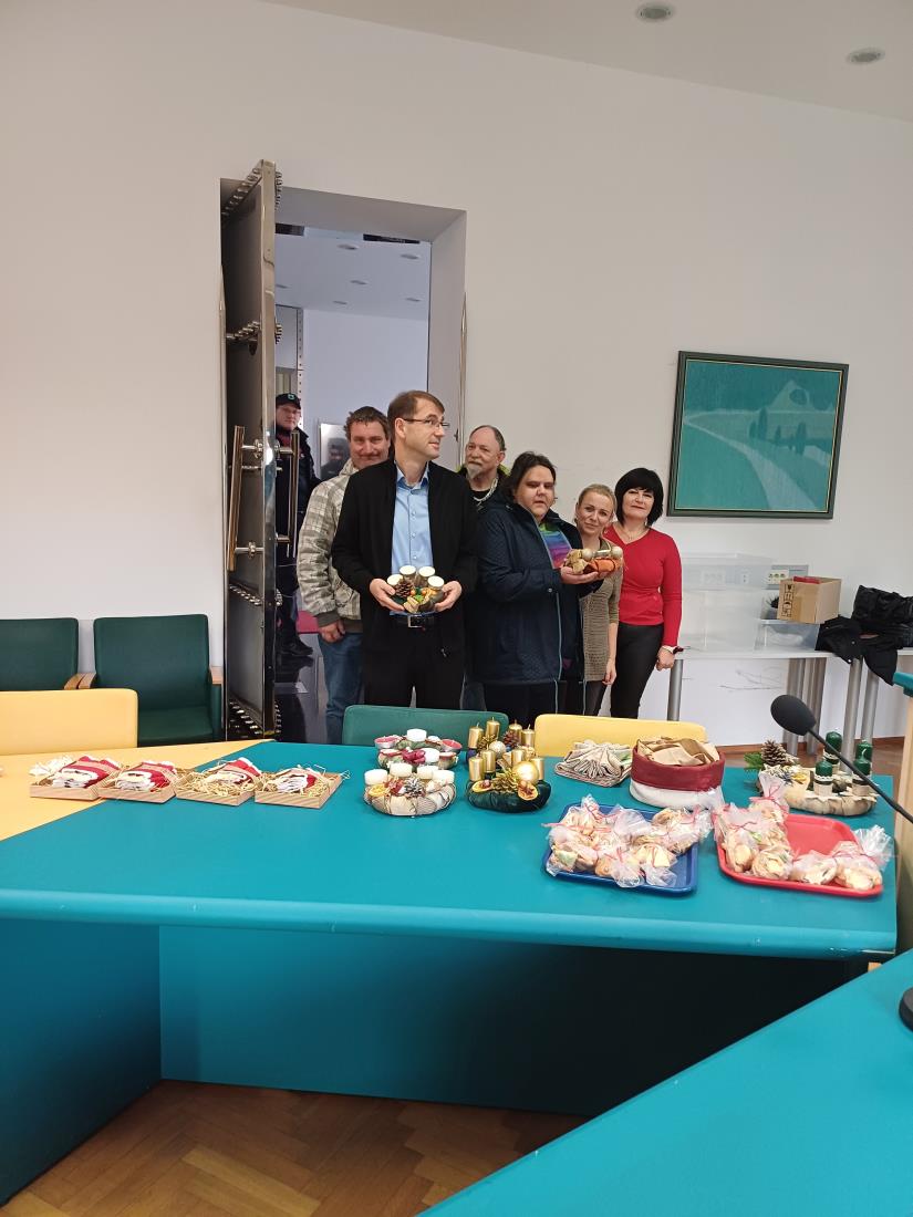 Zaposleni in uporabniki VDC Ravne na Koroškem so nas tudi letos razveselili z sveže pečenimi piškoti, adventnimi venčki in zanimivi izdelki za vsakdanjo uporabo v katere so vložili svoj trud, napor in veliko mero umetniškega izražanja. Zaposleni na občinski upravi na čelu z županom dr. Tomažem Roženom smo jim, ker vemo, da zbirajo denar za počitniško preživljanje časa na morju priskočili na pomoč s prostovoljnimi prispevki.