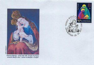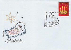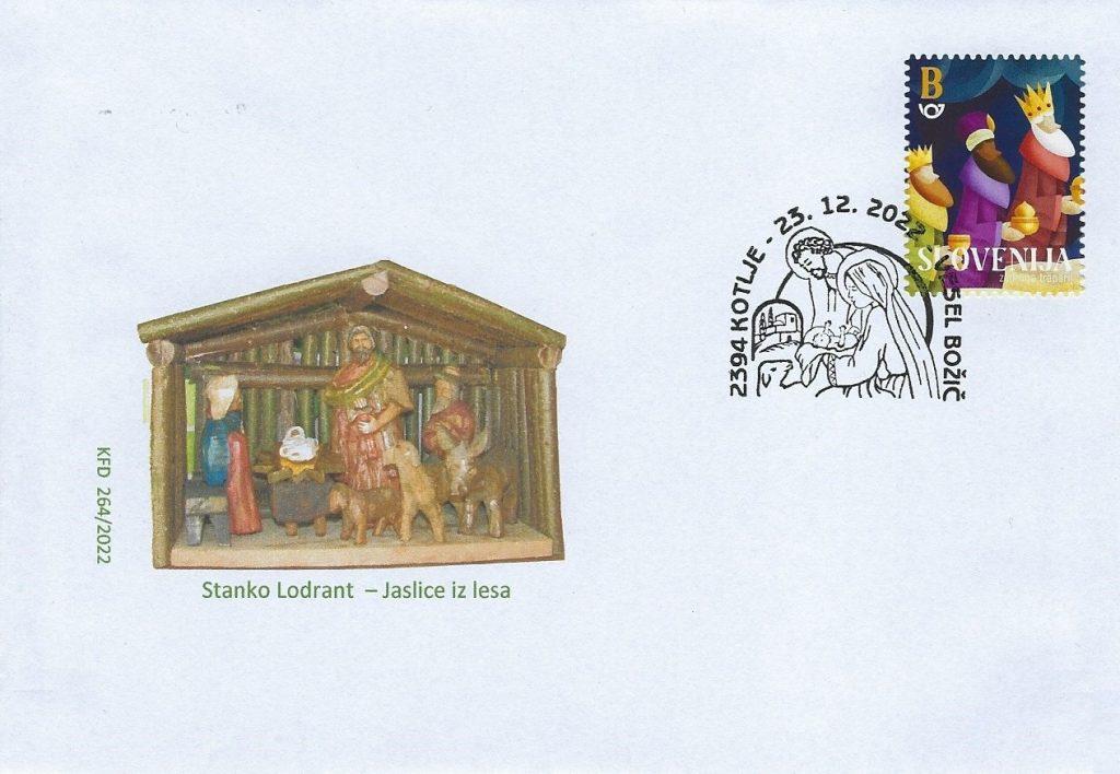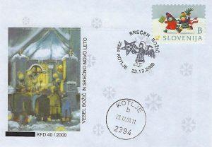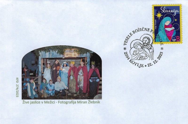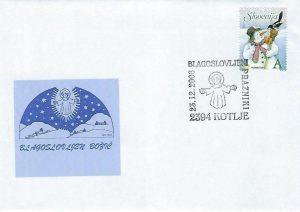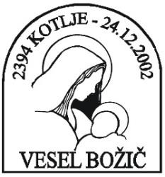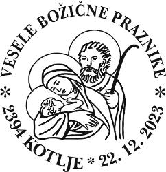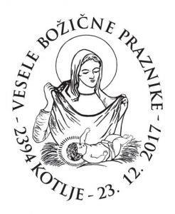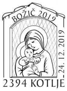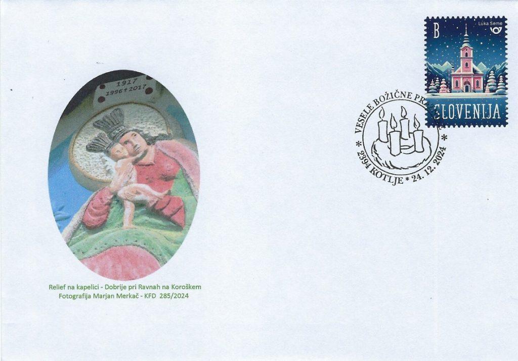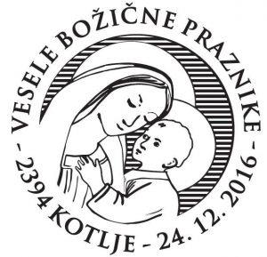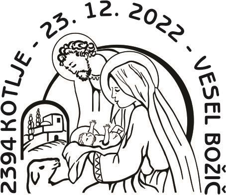 Koroško filatelistično društvo tako že 25 let in letos že z 26. priložnostno kuverto, opremljeno s priložnostnim poštnim žigom na temo "Božič" na zadnji delovni dan pošte 2394 Kotlje pred Božičem obeležuje priljubljen ljudski in verski praznik. Vsa leta so bili motivi na poštnem žigu in ilustraciji na kuverti vzeti ali povzeti bodisi iz krščanske ikonografije ali ljudskih motivov božičnega, novoletnega in ponovoletnega časa in tudi letošnji ni izjema. V letošnjem žigu je osrednji motiv adventni venček, na kuverti pa izsek iz reliefa kapelice na Dobrijah pri Ravnah na Koroške – oba sta sooblikovala Marjan Merkač in Peter Močnik. Za frankiranje so se uporabljale redne poštne znamke božičnega ali novoletnega sklopa Pošte Slovenije. Priložnostni filatelistični sklop dopolnjuje priložnostna filatelistična razstava »Božič«, ki jo je na pošti 2390 Ravne na Koroškem postavil Jože Keber (KFD).