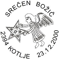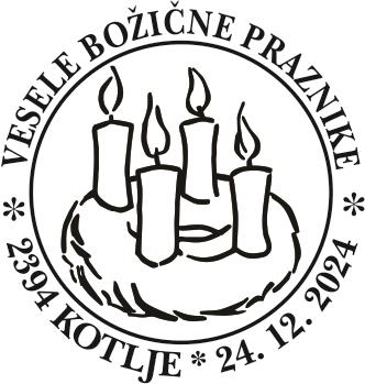 Predbožični torek je tik pred vrati in pošta 2394 Kotlje vas v torek, 24. 12. 2024 med 8. in 13. uro vabi, da jo obiščete in si na vaše kuverte, razglednice, knjige, tiskovine,…, odtisnete priložnostni poštni žig – odtis bo možen vse do svetih treh kraljev v letu 2025.