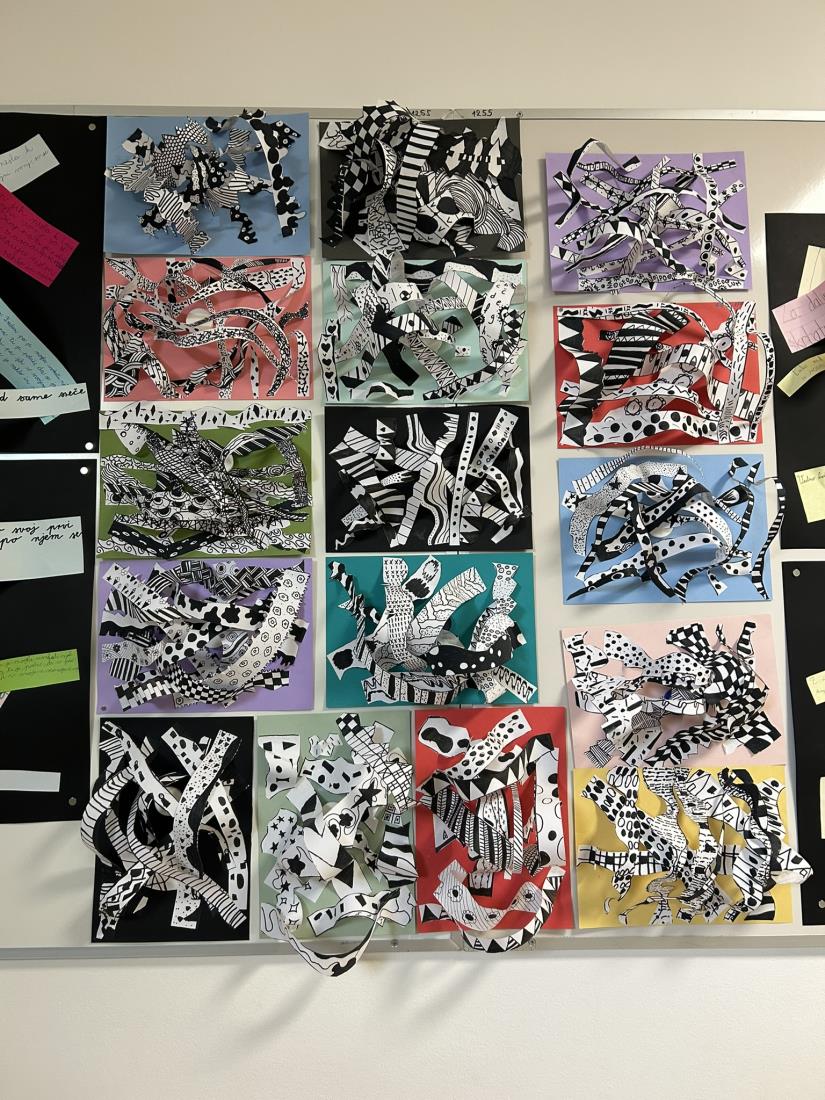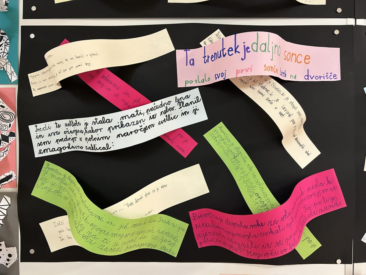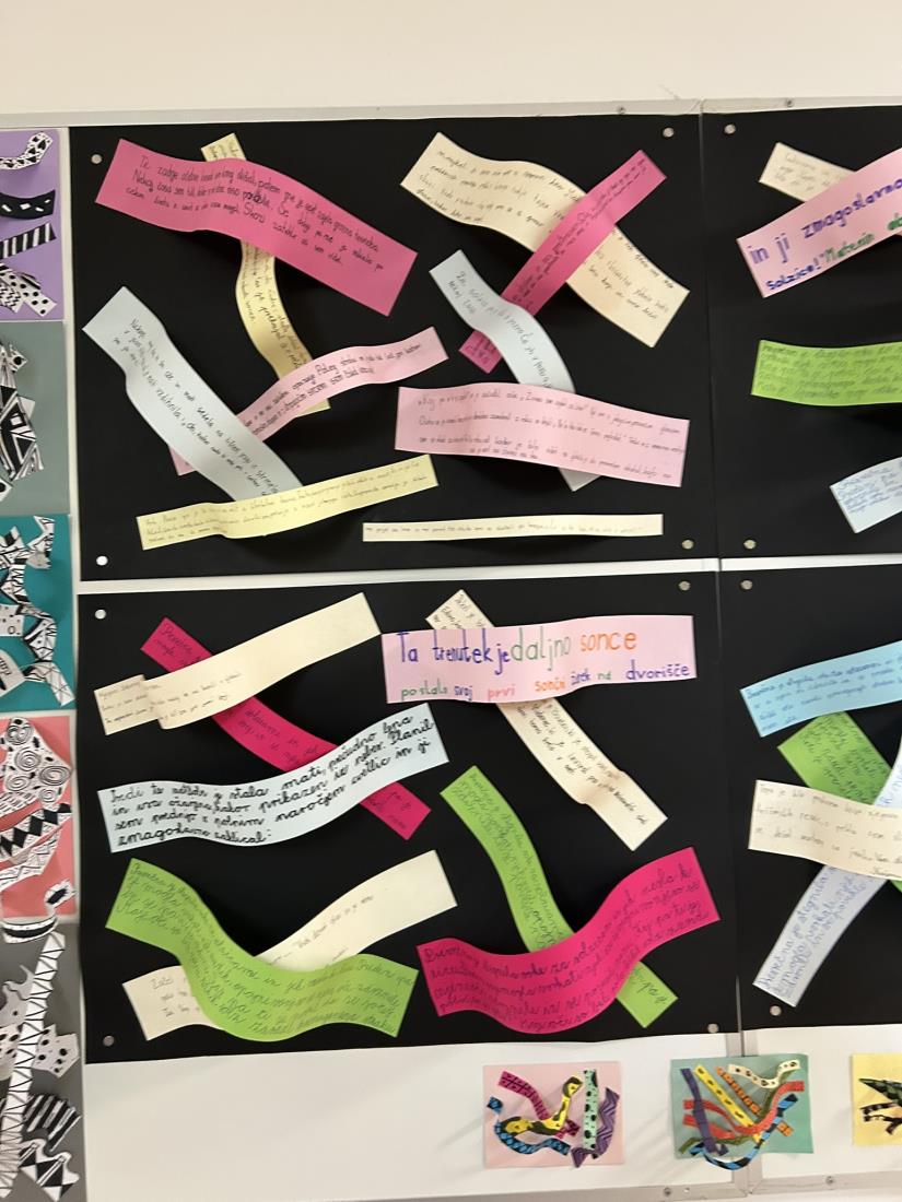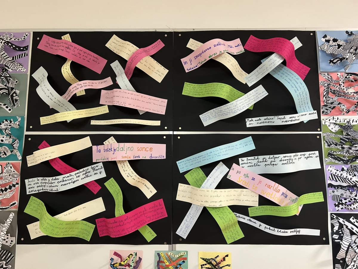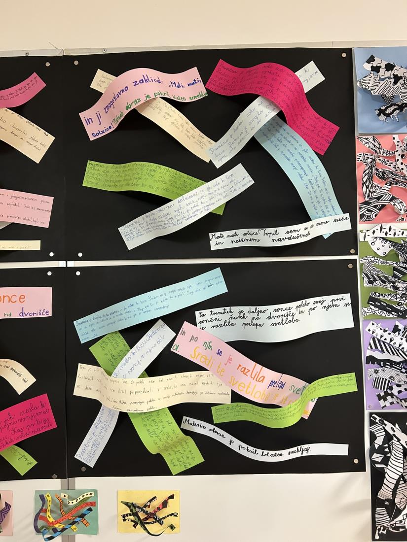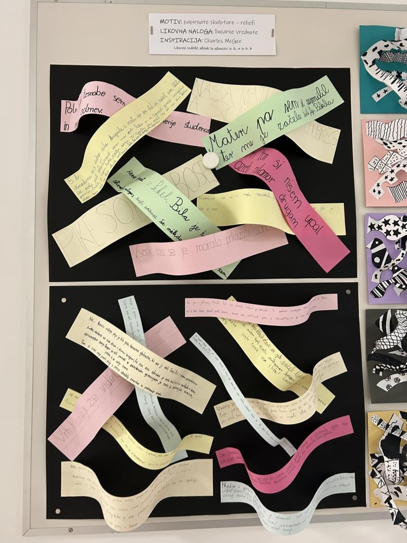 Pod mentorstvom učiteljice Alijane Tertinek so učenci oblikovali reliefne papirnate skulpture, pri čemer so eksperimentirali z različnimi vrstami linij, plastenjem in teksturami. Njihove stvaritve so odražale gibanje, povezanost in skladnost.