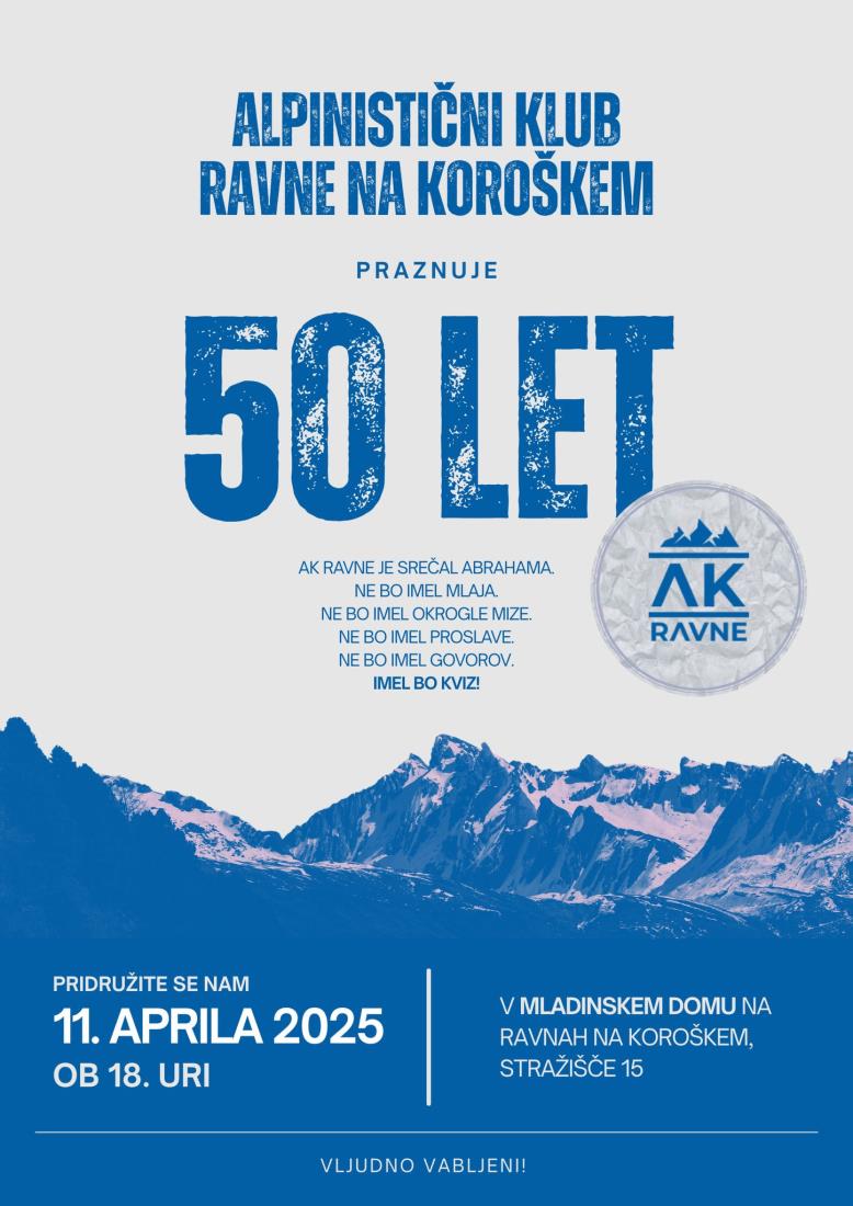 Vabimo vas, da se nam pridružite pri praznovanju 50-letnice Alpinističnega kluba Ravne na