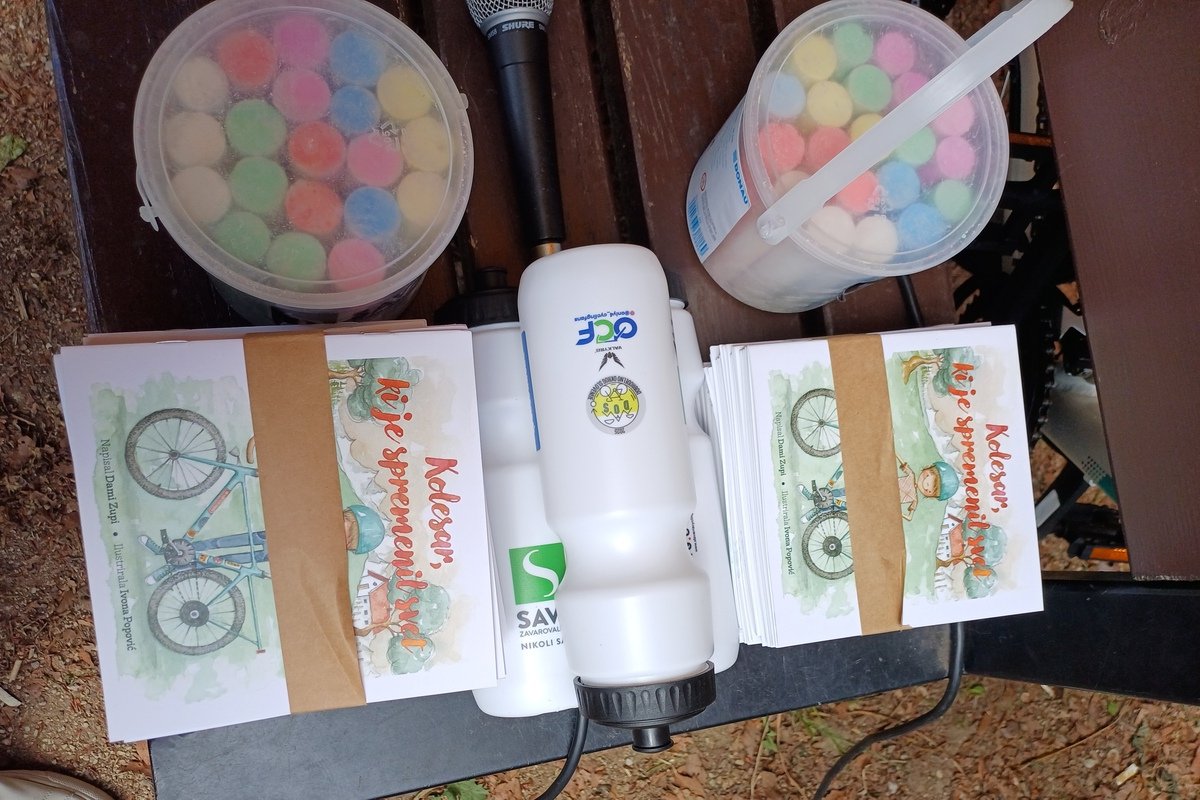 Otroci, ki so z veseljem pričakali prihod kolesarske ekipe, so poleg koles prejeli tudi čudovito tiskano pravljico »Kolesar, ki je rešil svet«, ki spodbuja zdrav življenjski slog in utrjuje vrednote povezovanja, pomoči ter navdiha. Ekipa DOS pa jim je pripravila še kratko, a nepozabno doživetje.