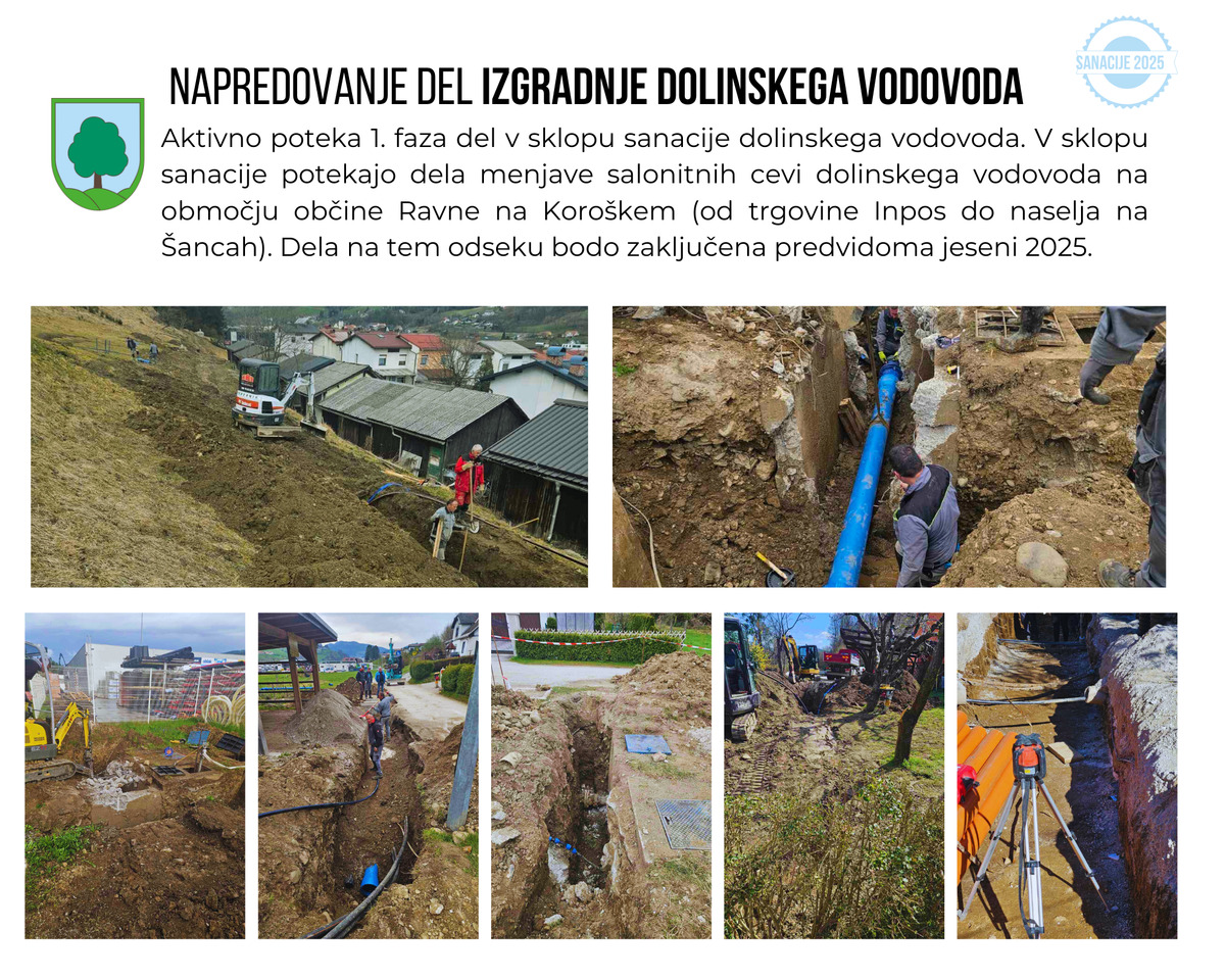 Aktivno poteka 1. faza del v sklopu sanacije dolinskega vodovoda.