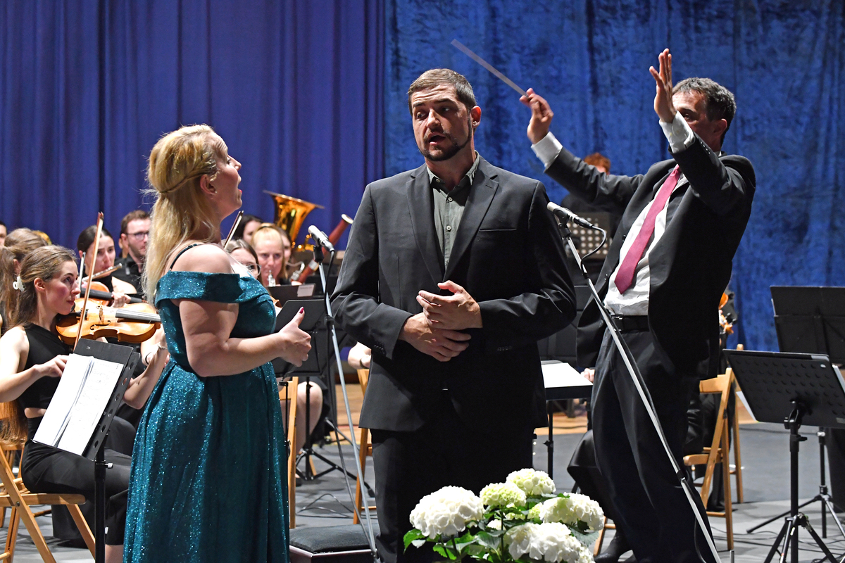 Včerajšnja edinstvena operna noč pod vodstvom dirigenta prof. Đorđa Beraka je pritegnila ljubitelje klasične glasbe v športno dvorano pri OŠ Prežihovega Voranca, saj vreme ni dopuščalo, da bi se odvila pod stoletnimi krošnjami Grajskega parka. Koroški simfoniki so osvojili srca poslušalcev z izbiro čudovitih del, ki so prepletala različne glasbene zvrsti in žanre. Večer se je začel z Beethovnovo uverturo Coriolan, ki je z veliko energijo napovedala odličen večer. Po začetni energiji smo uživali v Ariji Vilja Lied iz operete Vesela vdova, ki jo je s svojim čudovitim sopranom zapela Anemarija Štefančič, izkušena solistka, ki je magistrirala na Dunaju in se ponaša z bogato pevsko kariero, je občinstvo navdušila z izvrstno in kakovostno interpretacijo. Naslednja točka je bila Kol Nidrei Maxa Brucha, ki jo je s svojo izjemno tehniko in občutkom za melodijo odigrala violončelistka Katja Meljnikov Aigner, priznana umetnica in dobitnica številnih nagrad, ki je s strastno igro občinstvo popeljala v svet čustvenih melodij, ki prav z violončelom najbolj pridejo do izraza. Po njej je svoj glas predstavil tenorist Grega Jezeršek s priljubljeno pesmijo Torna a Surriento. Grega, ki se je izkazal na mednarodni operni sceni, je s svojo močjo in čustvi dodal čarobnost večeru. Večer je prinesel tudi čustveno in orkestralno polne duete, ki sta jih izvedla Anemarija Štefančič in Grega Jezeršek, pod spretno dirigentsko roko prof. Đorđa Beraka, ki je orkestru prekaljenih glasbenikov zbranih pod imenom Koroški simfoniki, pomagala ustvariti nepozabno vzdušje.