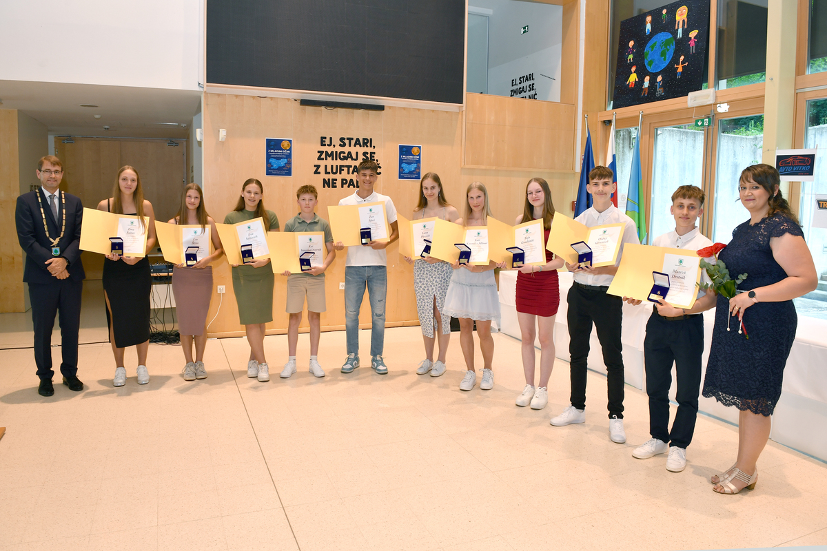 Zlato petico, ki simbolizira odličen uspeh skozi vseh devet let šolanja, je letos prejelo kar 52 izjemnih učenk in učencev. Priznanja jim je s ponosom podelil župan Občine Ravne na Koroškem, dr. Tomaž Rožen. Ob tem je čestital tudi njihovim staršem, učiteljem in ravnateljem, ki so pomembno prispevali k uspehu mladih.