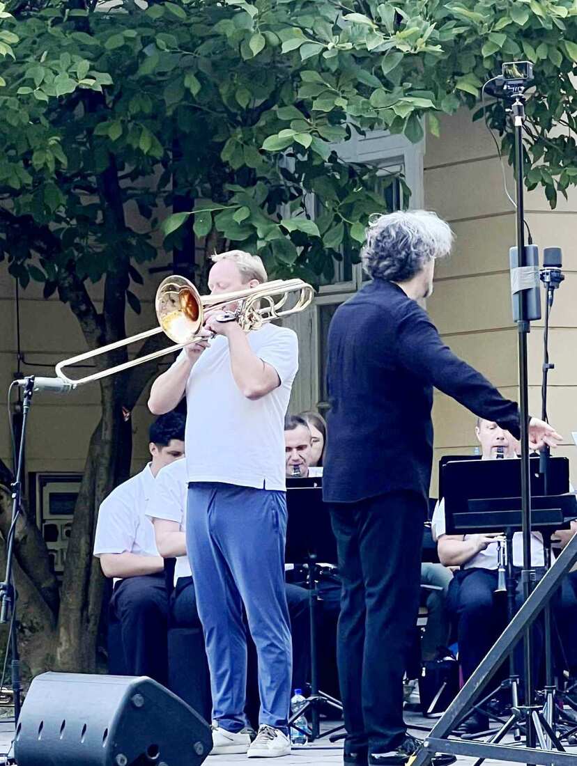 Letni koncert našega orkestra je minil ob zvokih izjemnih solistov. Klarinetista Bineta Breca, katerega delo Suita za pihala je bila v Sloveniji premierno izvedena. Bas pozavnista opere Davida Luidolda, s prvo izvedbo avstrijskega skladatelja Siegmunda Andraschka, Thor. Mlade, obetajoče sopranistke Zarje Pšeničnik in Marka Petka, ki je ponovno navdušil s svojim altovskim saksofonom.