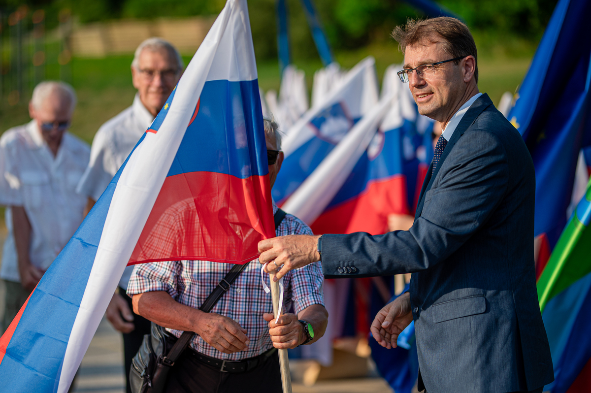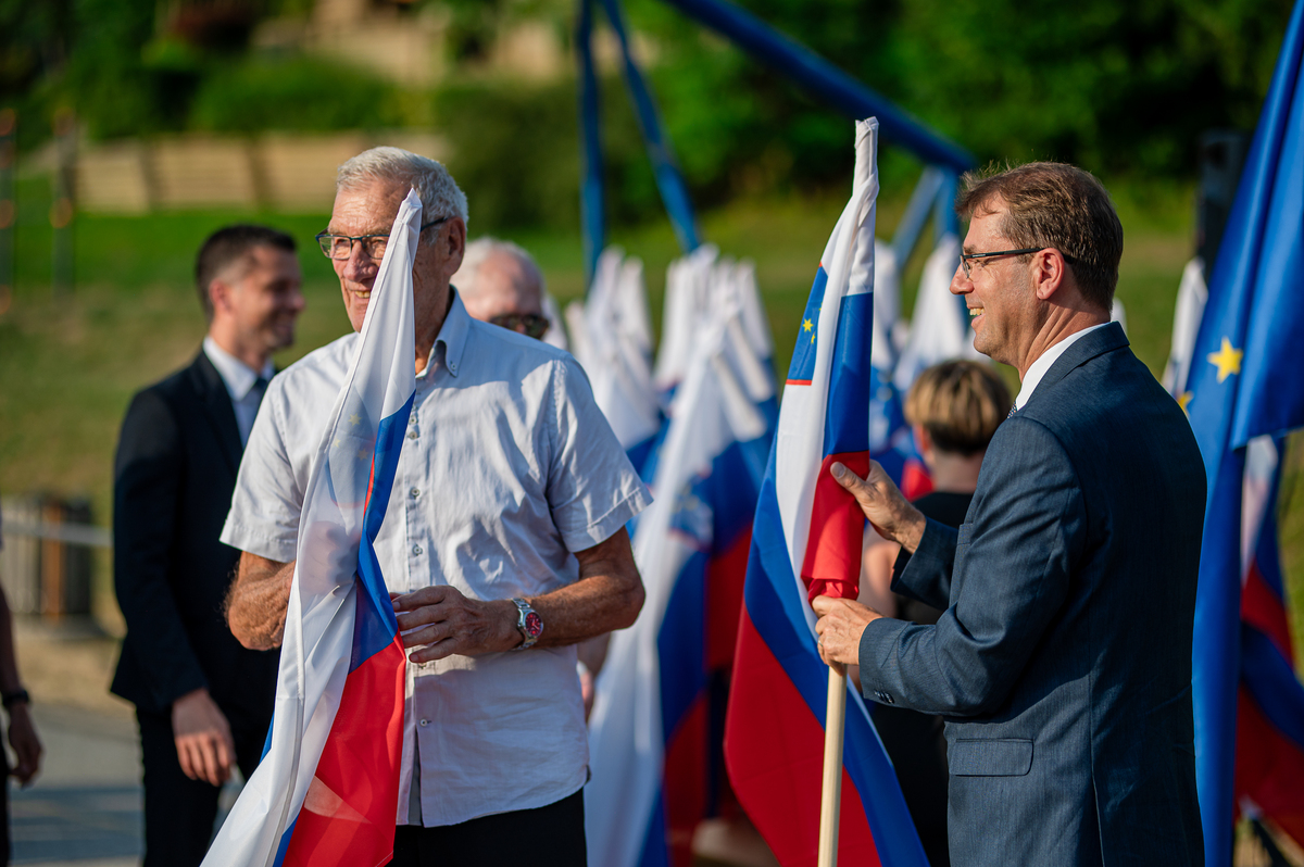 Vsem prisotnim občankam in občanom je župan dr. Tomaž Rožen v dar izročil simbol slovenske države – našo zastavo, ter ob čestitkah ob državnem prazniku dodal še: »Vsak korak, ki ga naredimo v imenu ljubezni do doma in domovine, je korak v smeri boljše prihodnosti za vse nas. Prvi korak je že, da ob praznikih, ponosno plapola slovenska zastava. Naš simbol in ponos. Naj zaplapola na vaših domovih.«