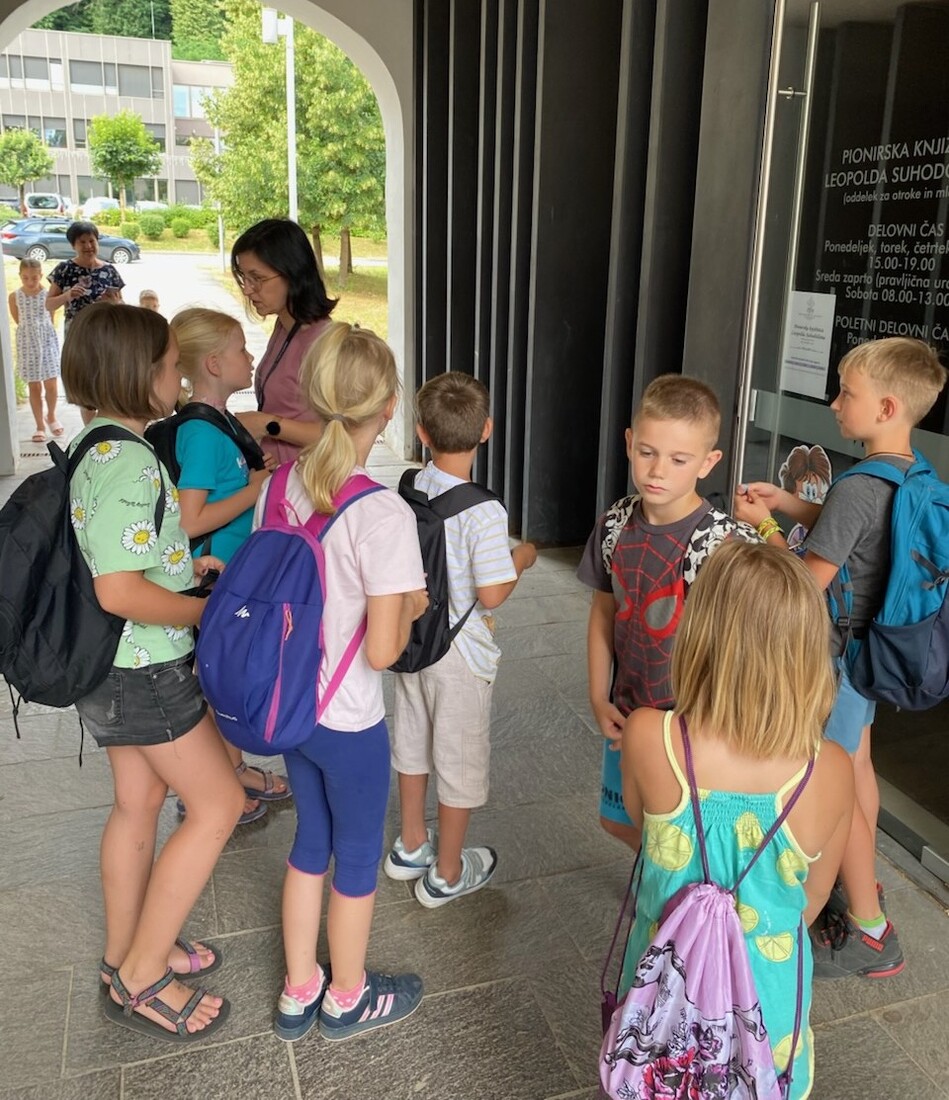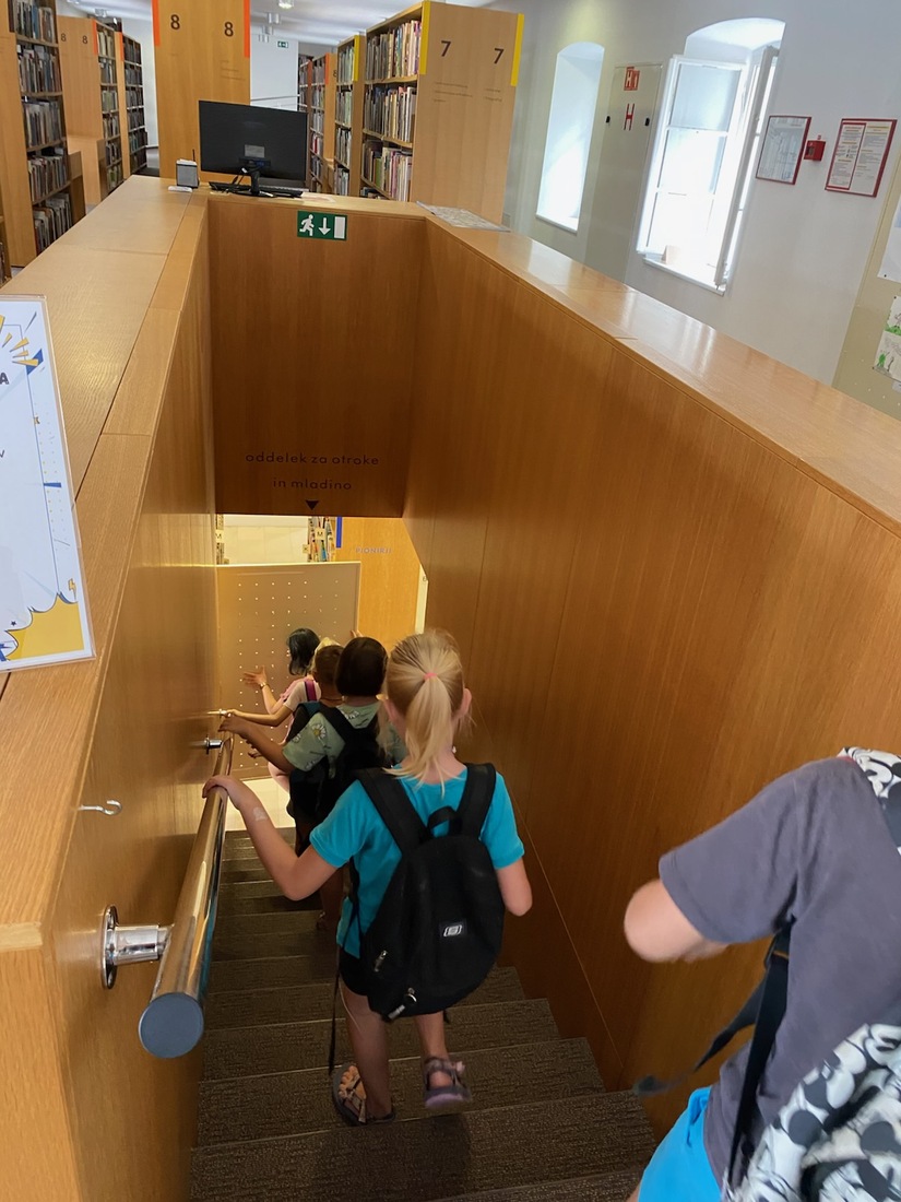 Torkovo dopoldne je minilo v znamenju knjig in ustvarjalnosti. V Koroški osrednji knjižnici so otroci odkrivali skrite kotičke med knjižnimi policami, nato pa na ustvarjalni delavnici izdelovali bumerange in zgibanke. Po kosilu in prosti igri je sledil zaslužen počitek – nekateri na blazinah, drugi kar pod stopnicami – vsak tam, kjer mu je najbolj ustrezalo.