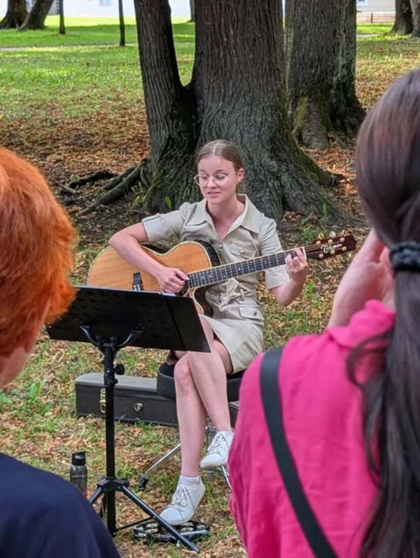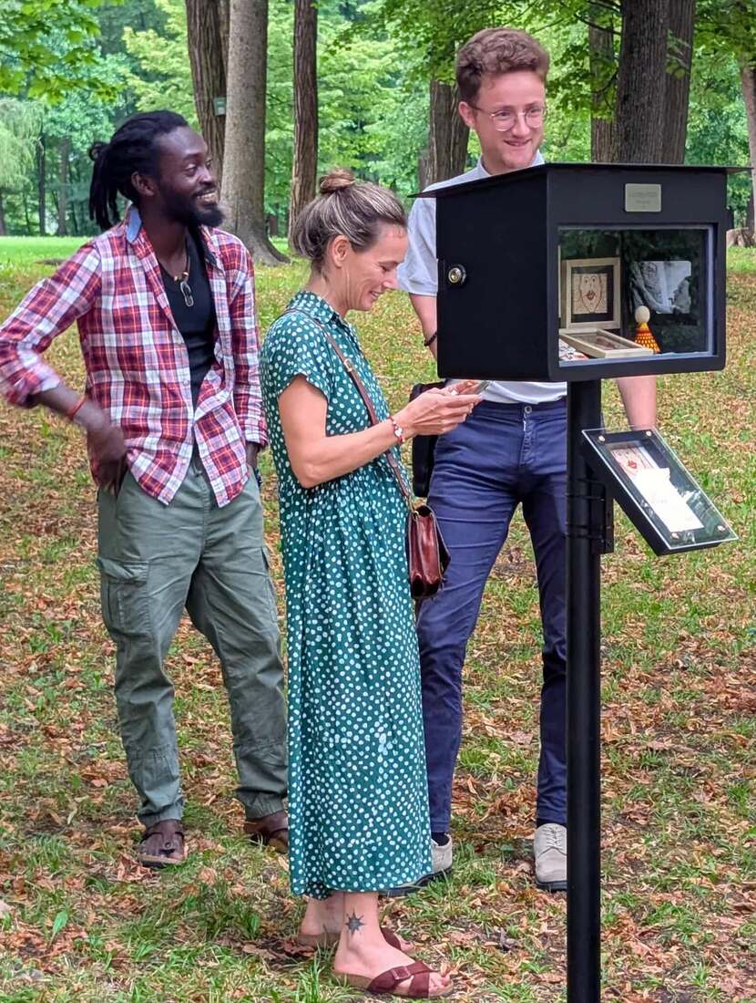 V zavetju dreves, kjer se mestni vrvež umakne tišini narave, je v ravenskem parku zaživela mala galerija na prostem z imenom Frida. Zasnovala in uresničila jo je domača ustvarjalka Zlatka Strgar, podarila pa slikarka Tjaša Rener.