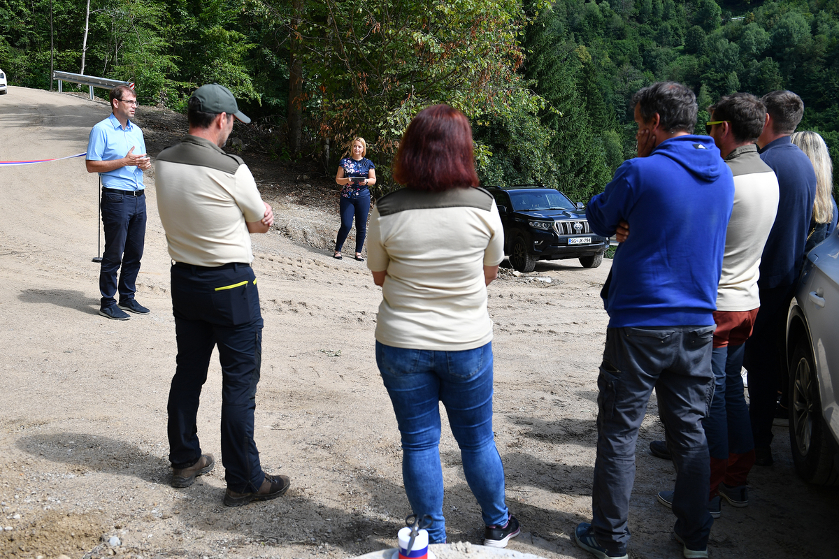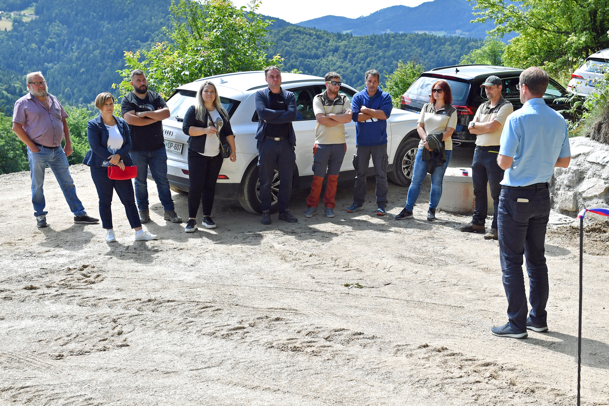 Občina Ravne na Koroškem je skupaj z Zavodom za gozdove Slovenije v lanskem letu pričela s sanacijo gozdnih cest, ki so v ujmi 4. Avgusta 2023 utrpele največje poškodbe. S strani Zavoda za gozdove Slovenije, ki je pripravil oceno škode so sodelovali: Simona Oto – vodja sektorja za ukrepe, Branislav Gradišnik vodja Območne enote Slovenj Gradec, Vodja krajevne enote Dravograd-Prevalje Vlado Petrič, ki je ravno pred zaključkom te ceste odšel v pokoj in ga je nadomestil Janez Zbičajnik.