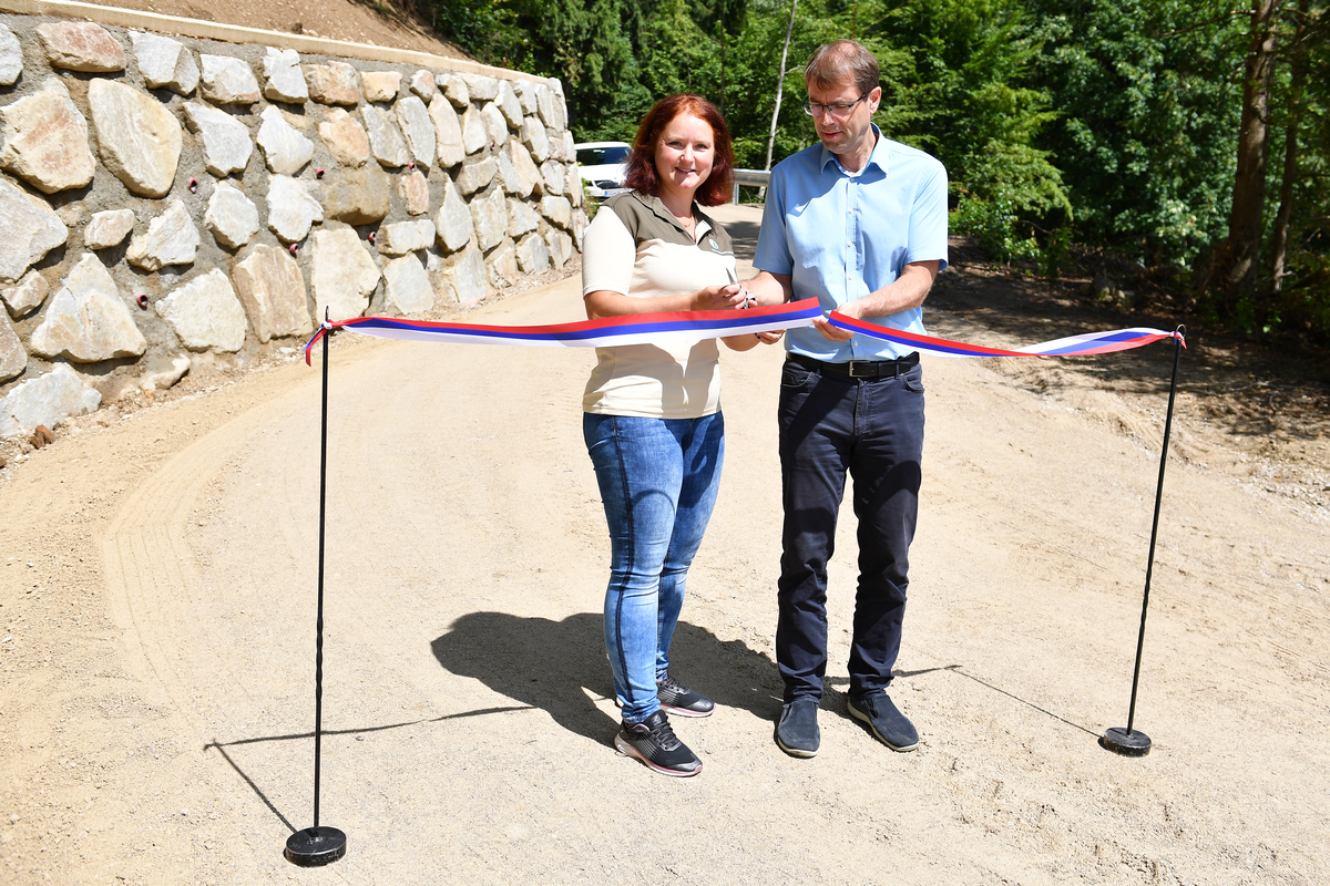 Ob zaključku projekta sanacije rekonstruirane gozdne ceste GC116065 RUTNIKOV KRIŽ – EBERLOVA BAJTA, smo ponosni, da smo praznovali to pomembno pridobitev za našo skupnost. Velikokrat pozabimo, da so gozdne ceste izjemnega pomena za povezovanje lokalne skupnosti. Župan dr. Tomaž Rožen in vodja sektorja za ukrepe Zavoda za gozdove, Območne enote Slovenj Gradec Simona Oto, sta simbolično prerezala trak in tako smo tudi uradno predali cesto v uporabo.