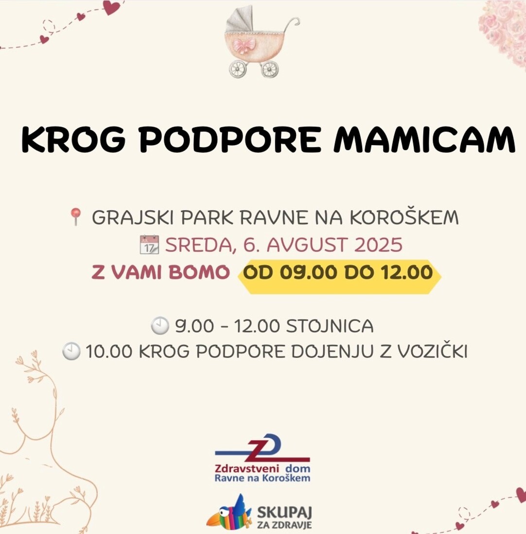V sklopu tedna smo dne 6. avgusta 2025 od 9. do 12.30 ure organizirali dogodek z imenom "Krog podpore mamicam" v Grajskem parku v Ravnah na Koroškem. Na informativni stojnici so obiskovalci prejeli uporabne informacije o dojenju, dostopni pomoči ter podpornih storitvah. Na dogodku smo uporabili tudi promocijski material, ki smo ga prejeli kot donacijo podjetja Pharmagea.