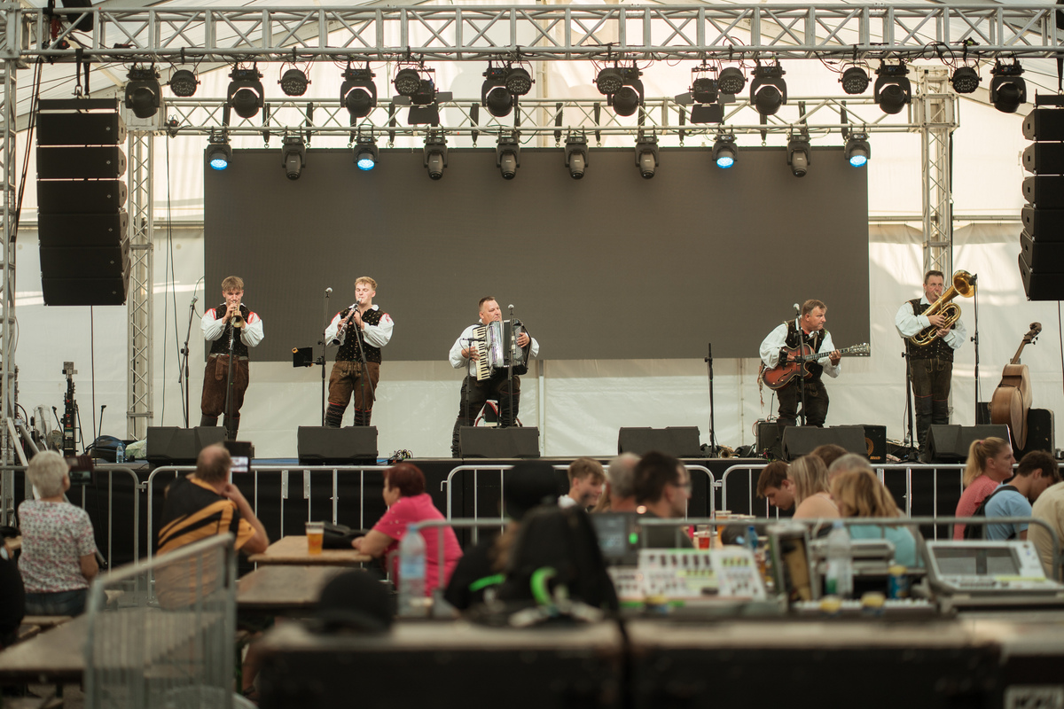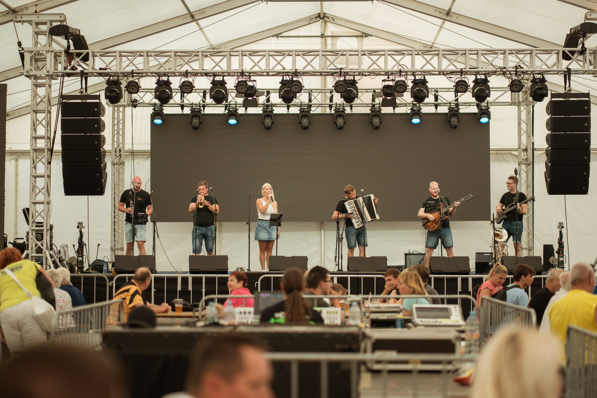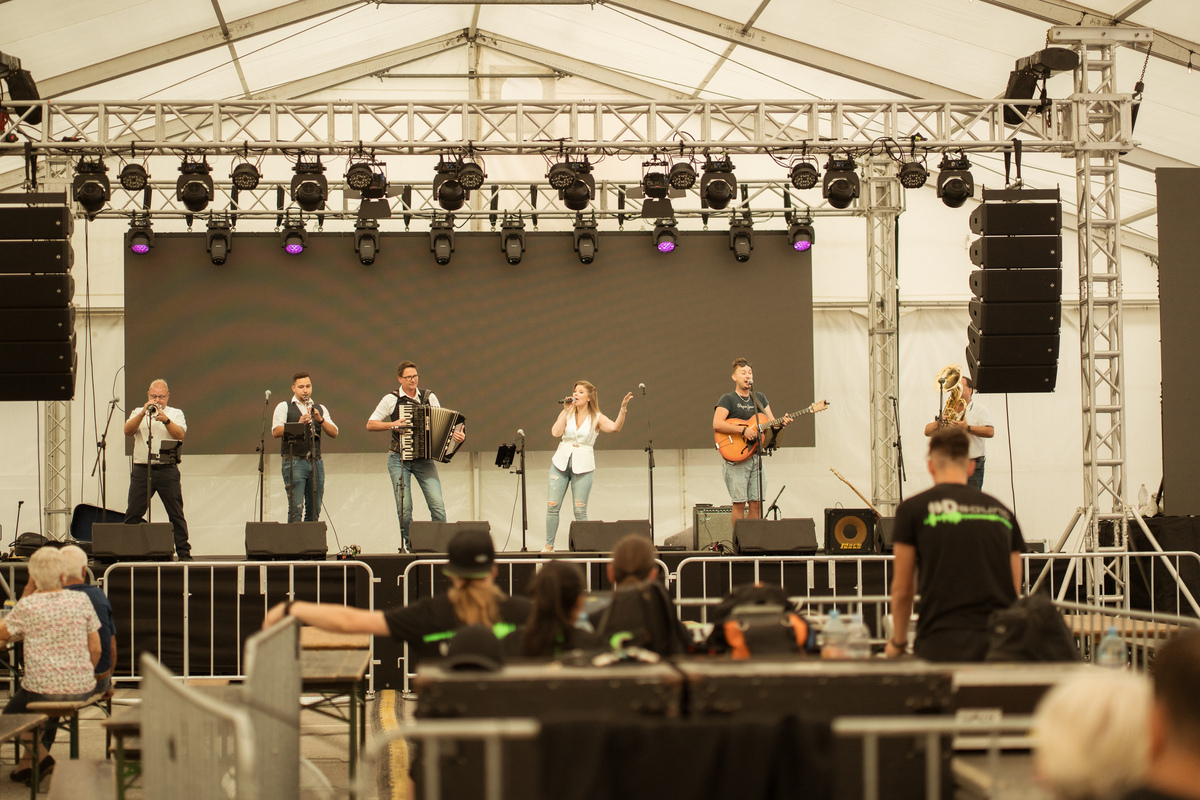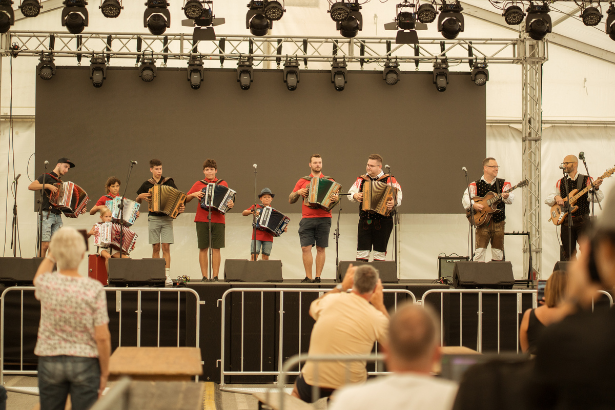 Sreda pa je bila namenjena tudi dnevu narodno-zabavne glasbe, ki je pomemben del slovenske tradicije. Pod šotorom so nastopili Trio Rošer, vodje Klemna Rošerja, ki je za presenečenje na oder povabil tudi nekaj svojih učencev harmonike iz vse Slovenije, ter koroški ansambli Koroški kvintet, Rosa, Abuhi in Juhej. Poskrbeli so za odličen popoldanski program, poln dobre volje in zabave. Okrogli muzikantje pa so občinstvo pod šotorom s plesom, smehom in vedrim razpoloženjem zadržali na nogah vse do poznih večernih ur.