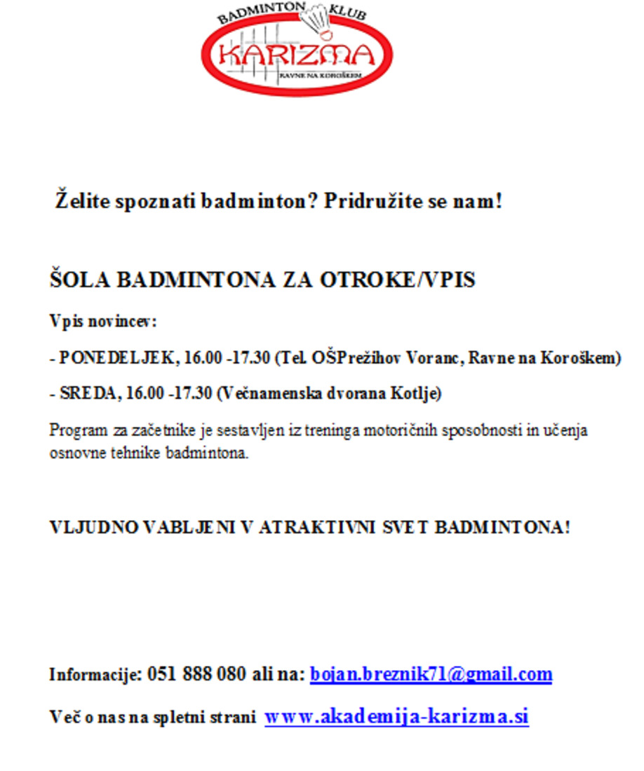 VLJUDNO VABLJENI V ATRAKTIVNI SVET BADMINTONA!