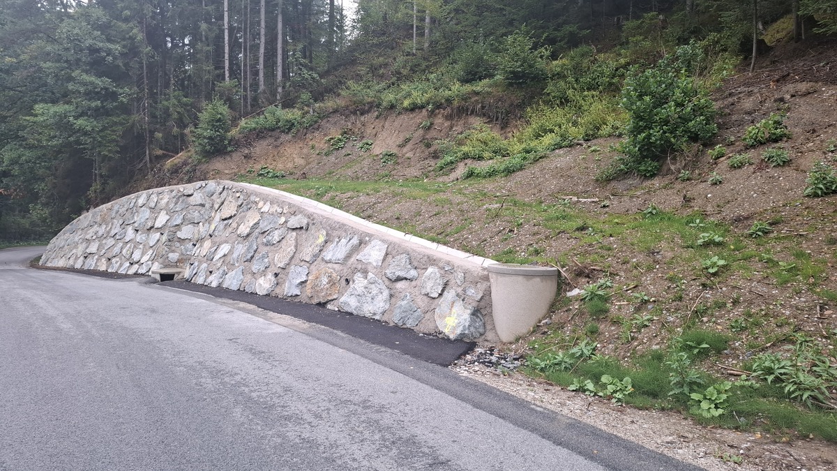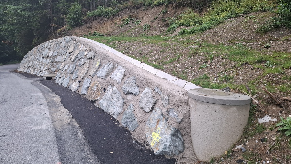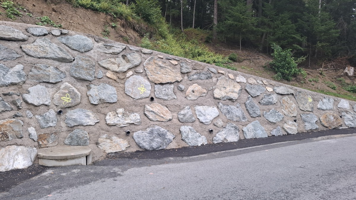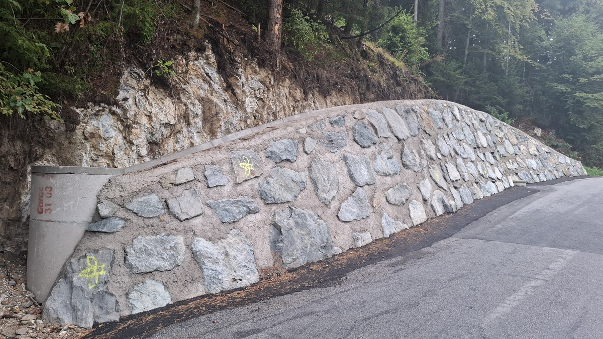Izvedla se je oporna konstrukcija - kamnita zložba v dolžini 35 metrov in svetli višini zidu do 3,9 metra.