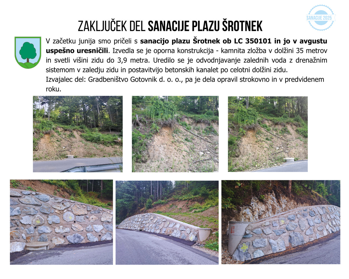 V avgustu 2025 smo zaključili sanacijo plazu Šrotnek.