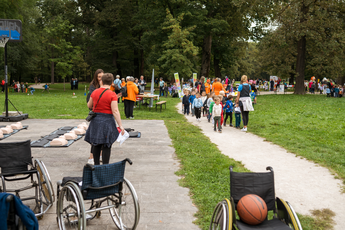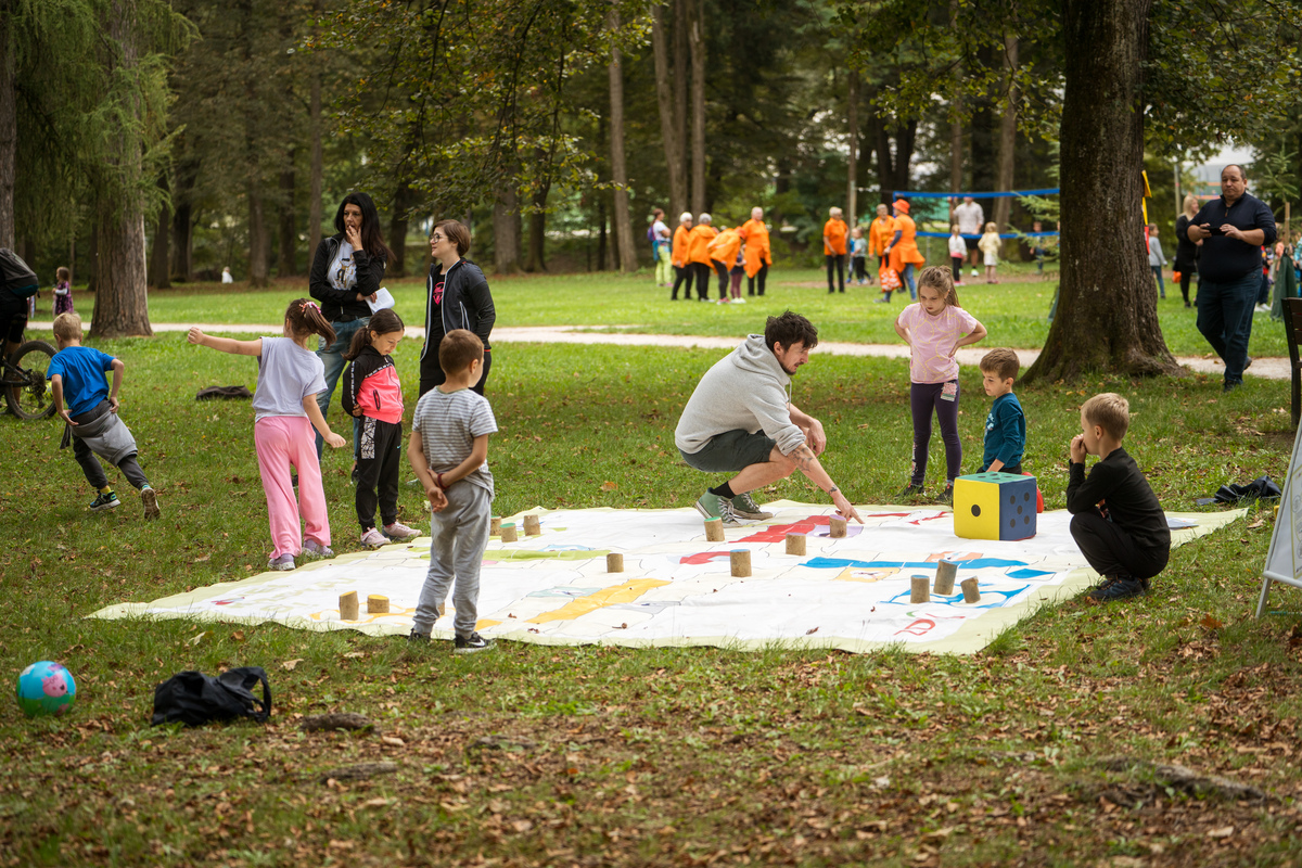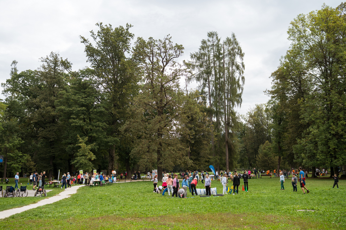 Začetek in uvodni pozdravi ter kratek kulturni program je potekal v Grajskem parku. Tu so se predstavila številna športna društva in društva za zdravje, ki so za otroke in mladostnike pripravila različne (predvsem gibalne) aktivnosti. Hkrati so te vodene aktivnosti potekale tudi na prenovljeni Trim stezi.