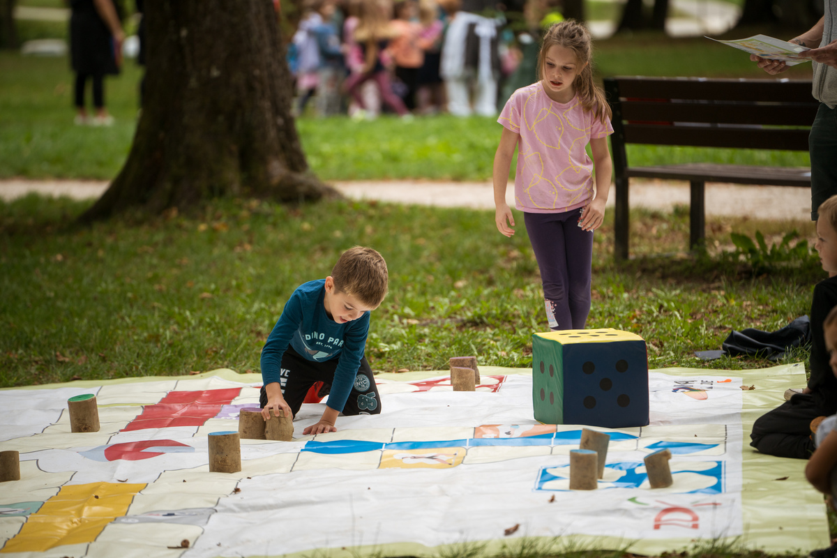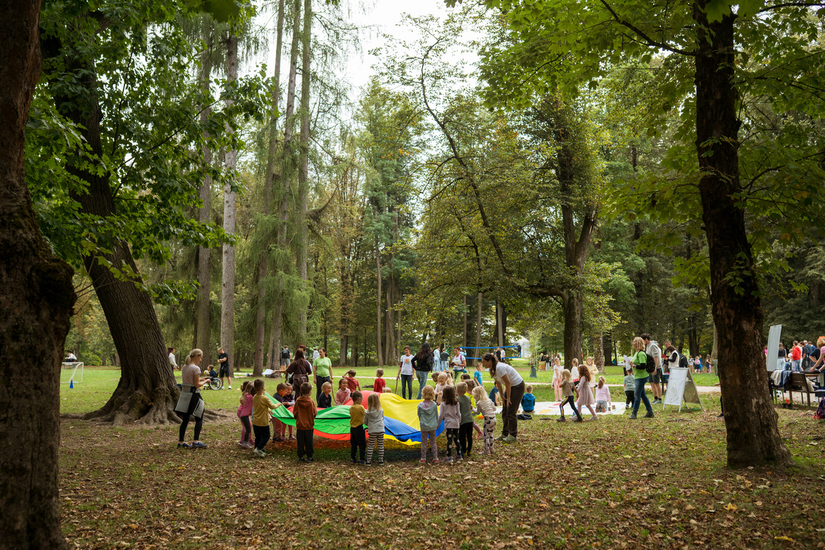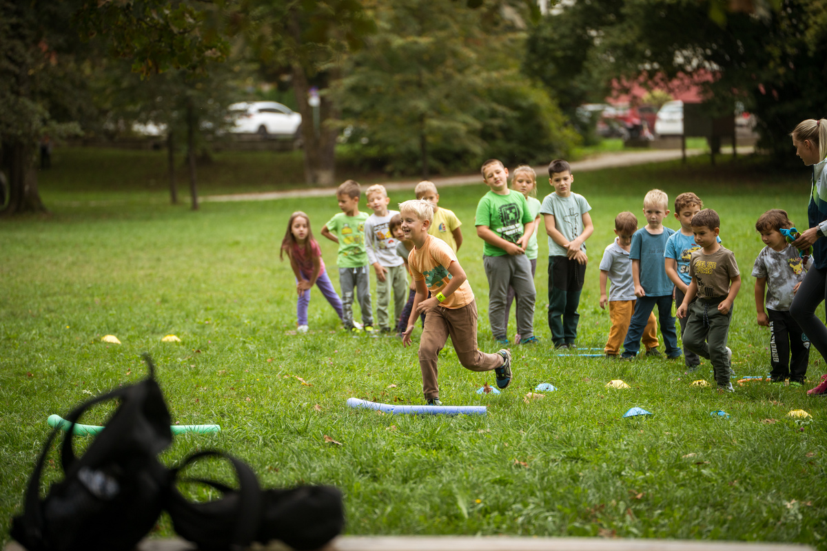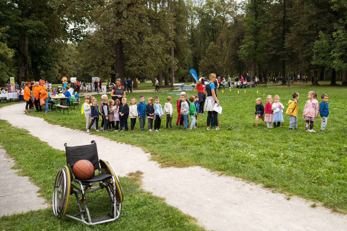 Začetek in uvodni pozdravi ter kratek kulturni program je potekal v Grajskem parku. Tu so se predstavila številna športna društva in društva za zdravje, ki so za otroke in mladostnike pripravila različne (predvsem gibalne) aktivnosti. Hkrati so te vodene aktivnosti potekale tudi na prenovljeni Trim stezi.