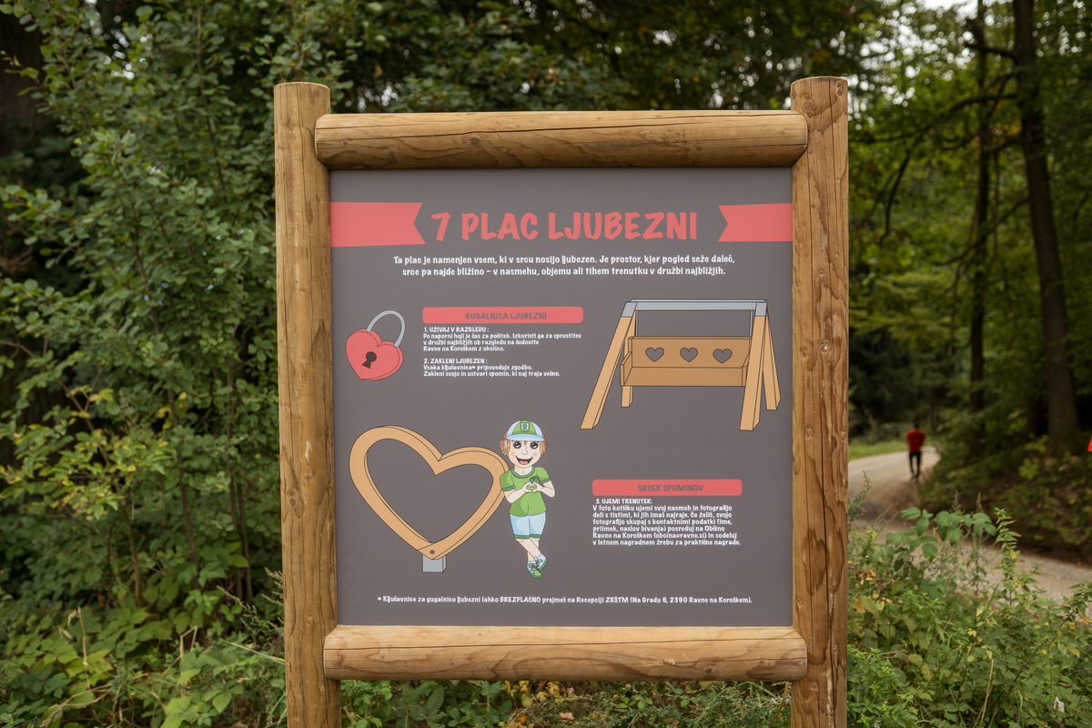 Na placu ljubezni najdemo gugalnico ljubezni, ki jo lahko izkoristite za sprostitev v družbi najbližjih ob razgledu na čudovite Ravne na Koroškem z okolico.