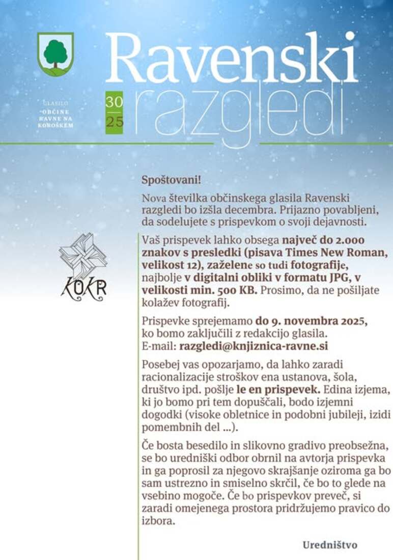 Prispevke sprejemamo do 9. novembra 2025, ko bomo zaključili z redakcijo glasila.