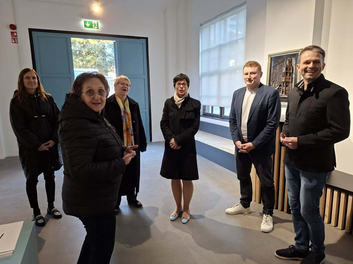 Po prenovljenih prostorih nekdanje štauharije, ki znova zaživi kot prostor kulturnega in tehniškega spomina, jo je popeljala muzejska svetnica dr. Karla Oder. Komisarko so na domačih Ravnah pozdravili podžupan Občine Ravne na Koroškem Andrej Erjavec, direktorica občinske uprave mag. Vlasta Kupljen, direktor Koroškega pokrajinskega muzeja mag. Tadej Pungartnik.