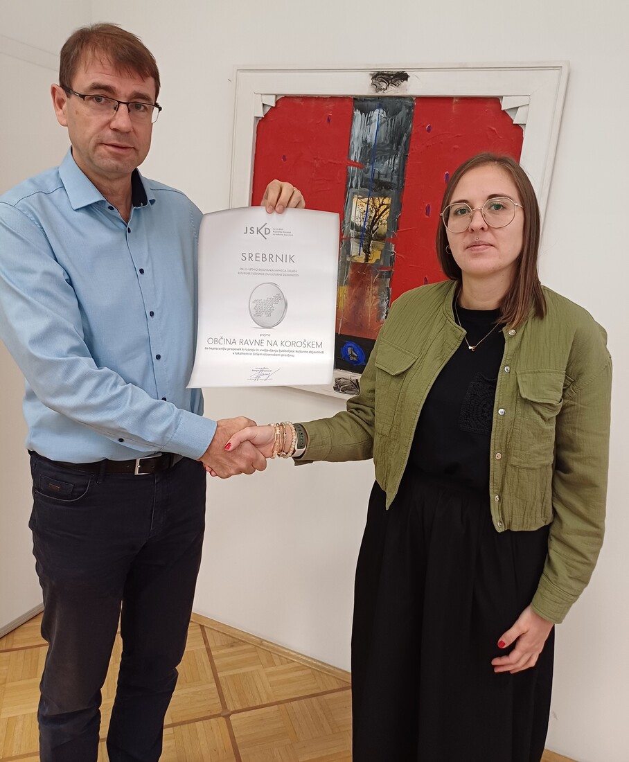 Srebrnik ob 25-obletnici delovanja JSKD je občini predala Manja Gerold, vodja na JSKD OI Ravne, ki se je zahvalila za dolgoletno predanost in podporo ljubiteljski kulturi.