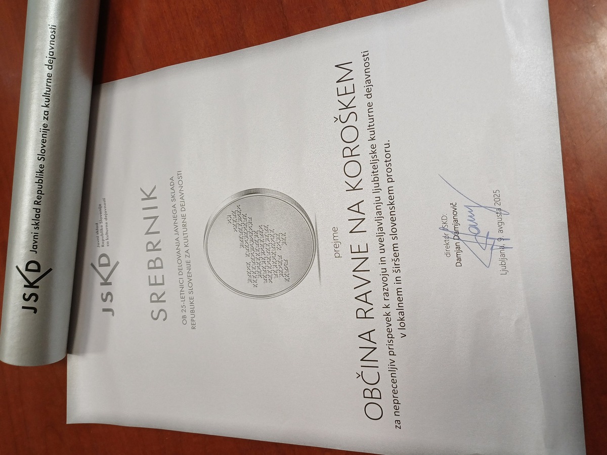 Občina Ravne prejela listino Srebrnik JSKD ob 25-letnici delovanja