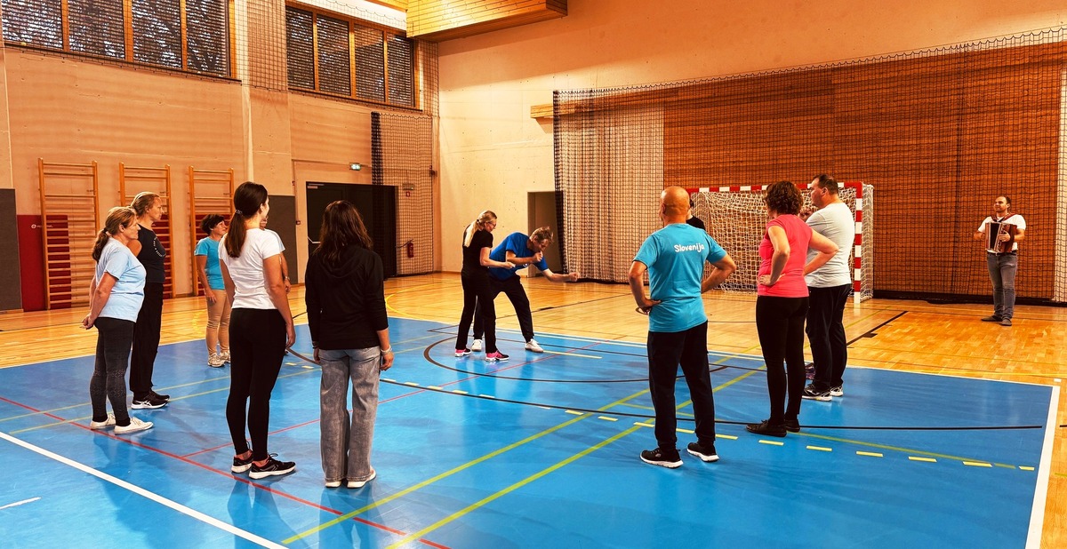praktični del, ki je združil vsebinske sklope obeh dni v celovito plesno izkušnjo. Praktični del je s harmoniko pospremil Alen Rožej.