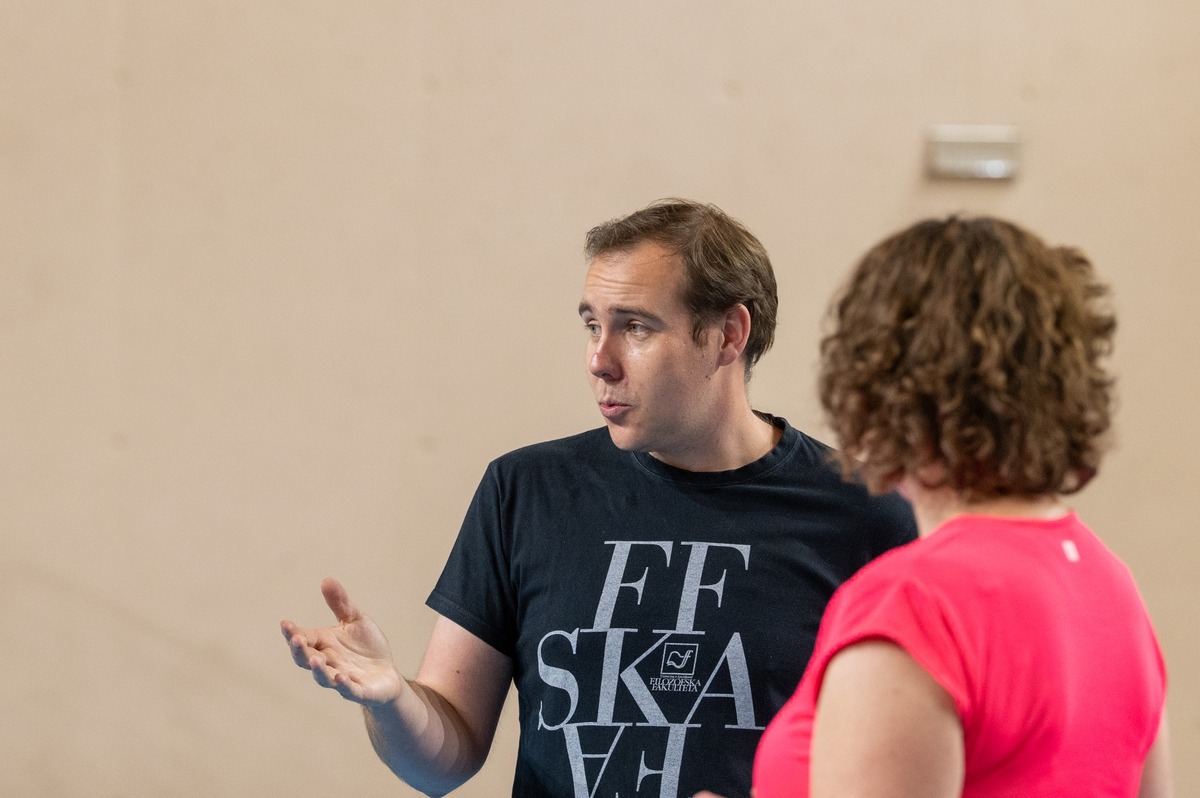 Nedeljsko dopoldne je bilo namenjeno tehniki in interpretaciji, kjer so udeleženci s praktičnimi vajami poglobili razumevanje gibanja, ritma in odnosa med plesalci na odru. Sledil je še zaključni