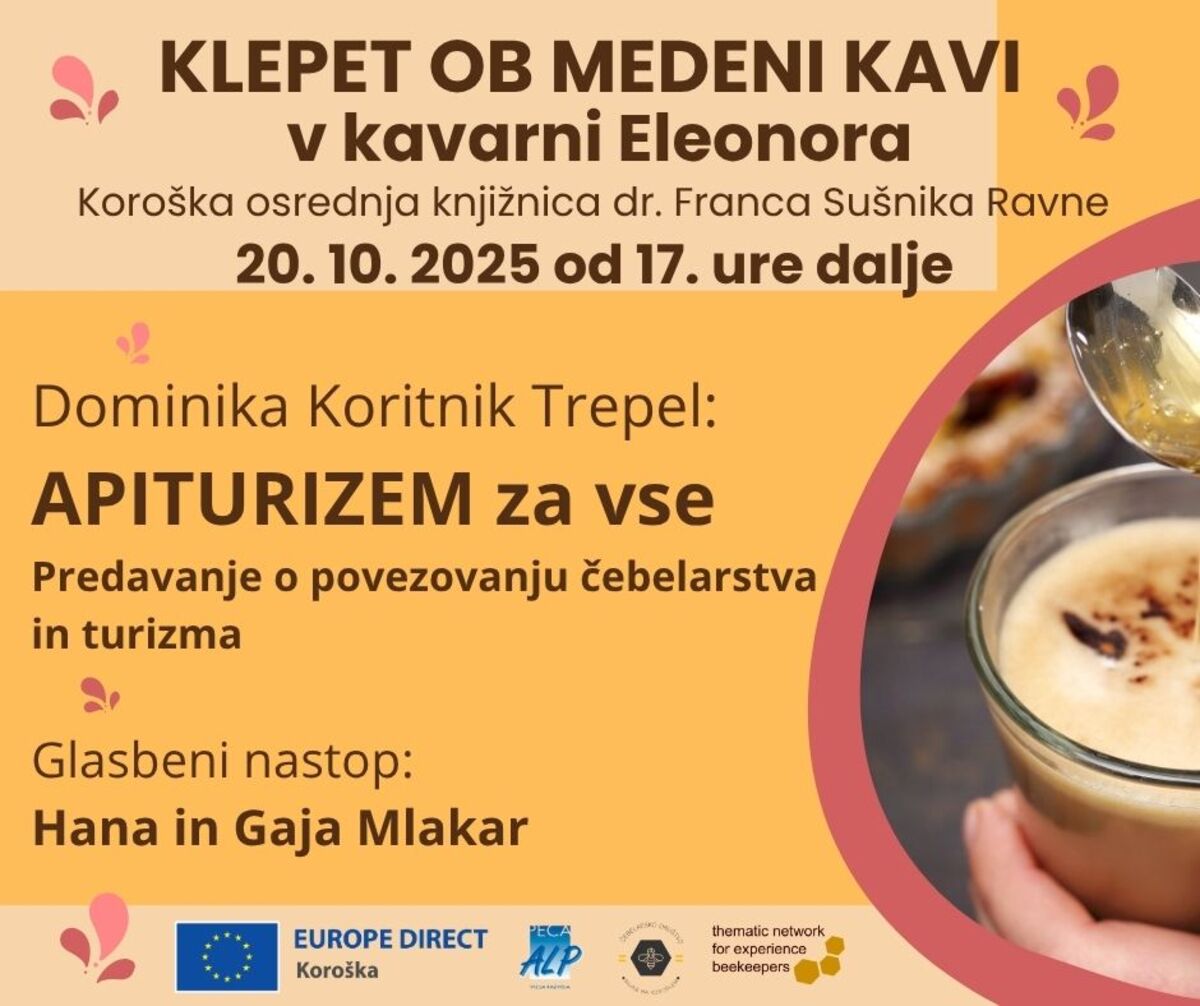 Pridružite se nam na prijetnem klepetu ob medeni kavi, kjer bomo spregovorili o apiturizmu – turizmu, ki povezuje čebele, ljudi in naravo.