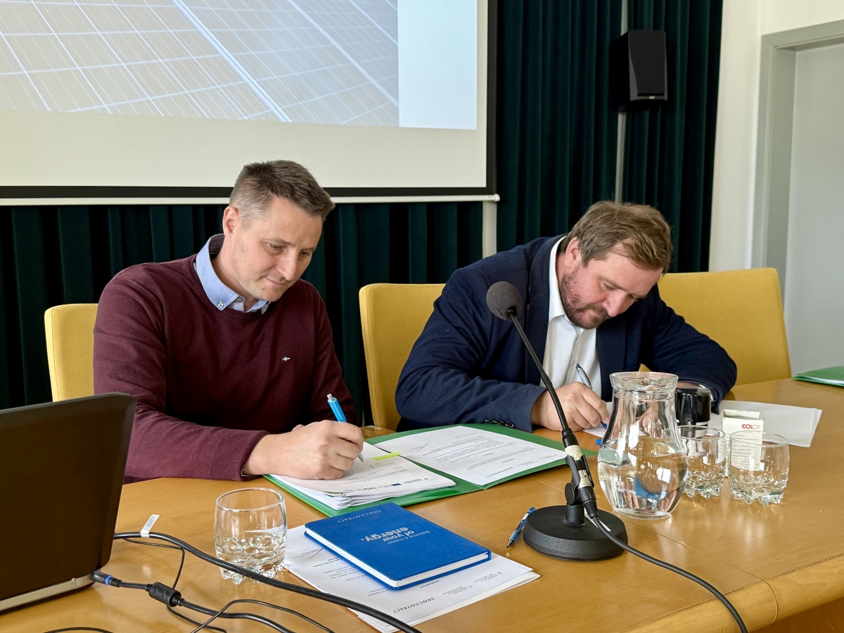 Podpis izvajalske pogodbe o izgradnji sončnih elektrarn za občine Ravne na Koroškem, Mežica in Dravograd ter Koroški dom starostnikov.