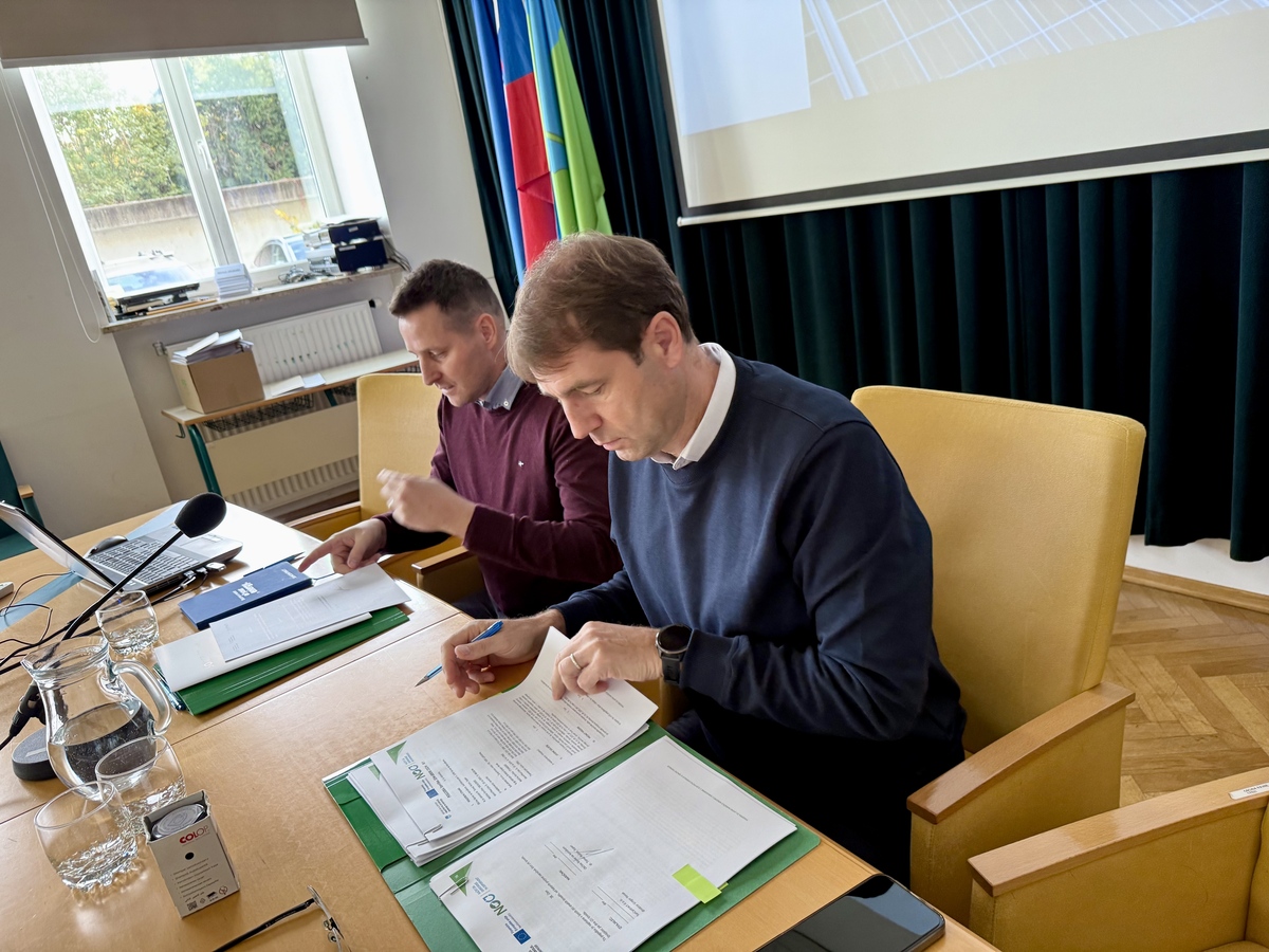 Na sedežu občine Ravnah na Koroškem smo danes, v petek, 24. 10. 2025 podpisali pogodbo z izvajalcem sončnih elektrarn, ki bo dela izvajal za občine Ravne na Koroškem, Mežica in Dravograd ter Koroški dom starostnikov. V okviru skupnega javnega naročila je bil izbran izvajalec SunContract d. o. o. Projekt je deloma sofinanciran tudi s sredstvi NOO.