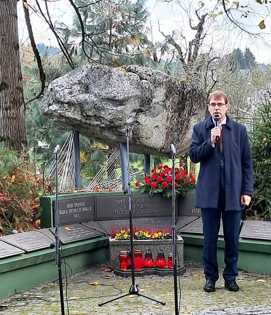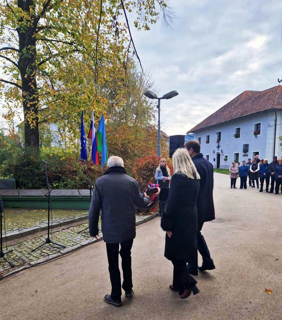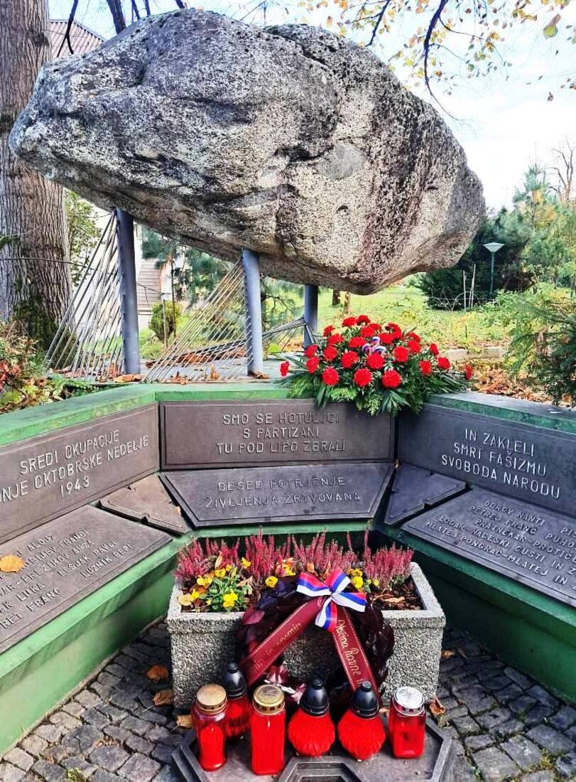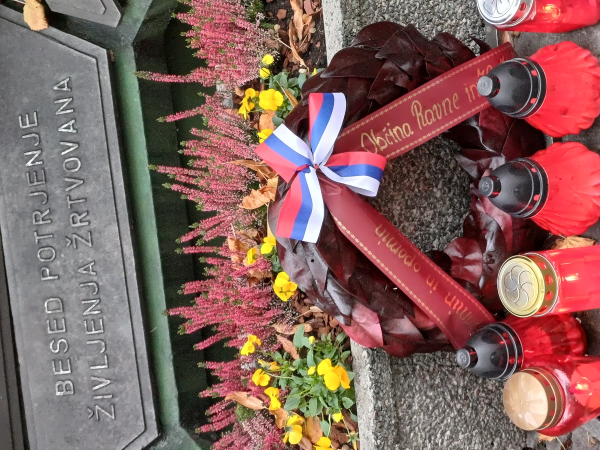 Venec so k mogočnemu spomenku v spomin vsem padlim borcem in žrtvam fašističnega nasilja položili župan Občine Ravne na Koroškem dr. Tomaž Rožen, predsednica Krajevne skupnosti Kotlje Suzane Šapek in predsednik Združenja borcev za vrednote NOB, Občinske organizacije Ravne na Maksimiljan Večko.