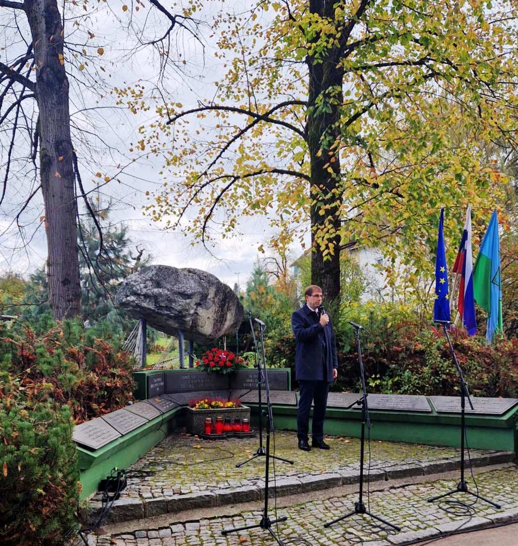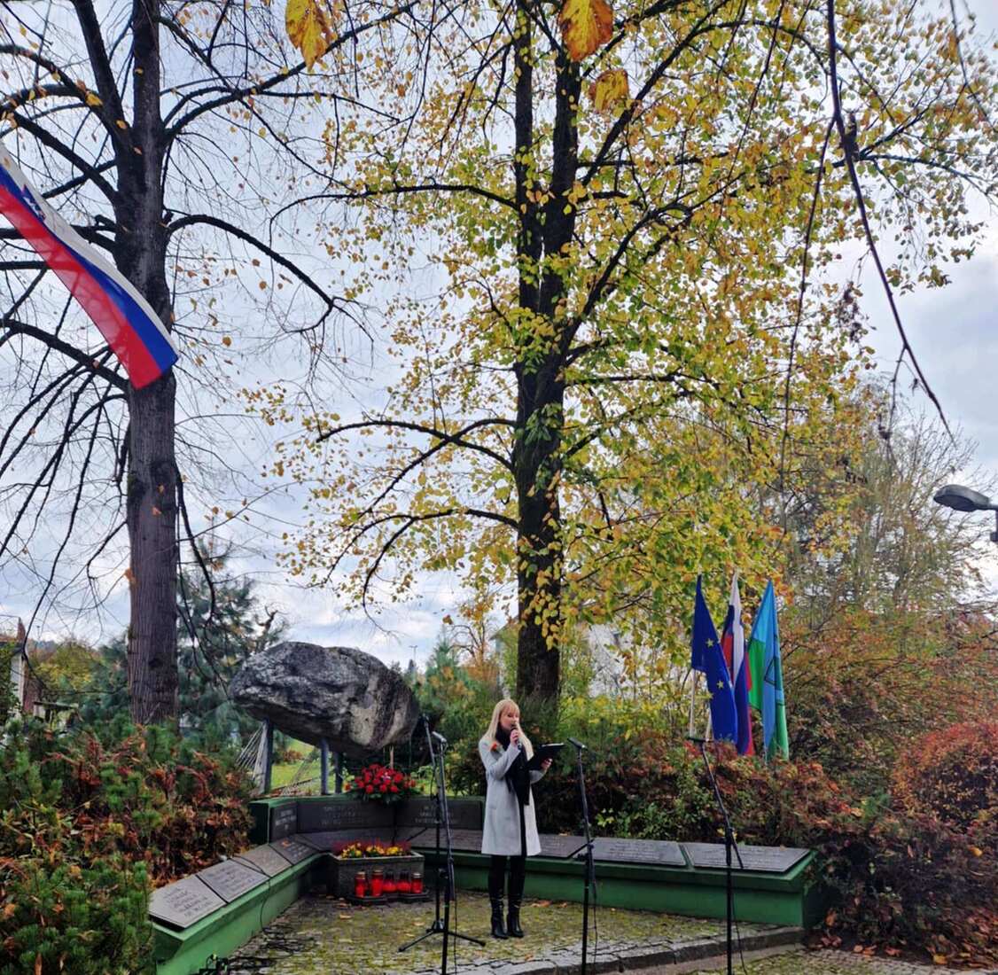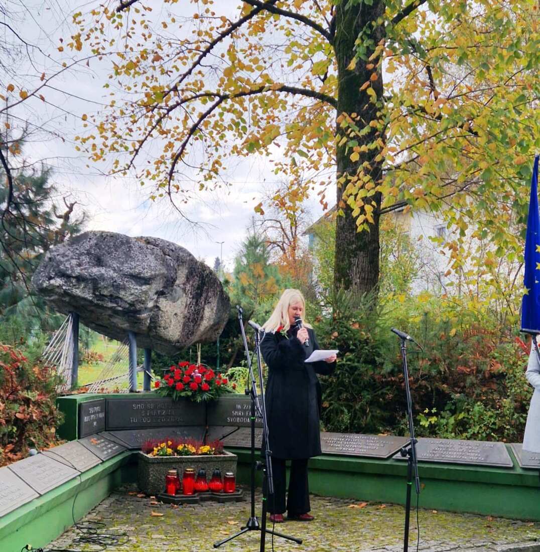 Venec so k mogočnemu spomenku v spomin vsem padlim borcem in žrtvam fašističnega nasilja položili župan Občine Ravne na Koroškem dr. Tomaž Rožen, predsednica Krajevne skupnosti Kotlje Suzane Šapek in predsednik Združenja borcev za vrednote NOB, Občinske organizacije Ravne na Maksimiljan Večko.