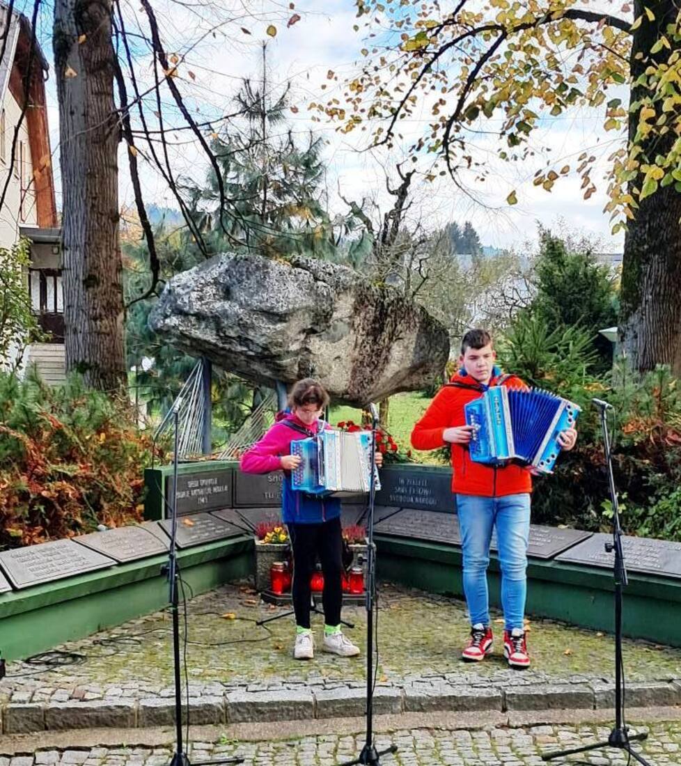 V programu, ki so ga sooblikovali otroci POŠ Kotlje ter harmonikarja Matej in Urška Hartman in Lovski oktet LD Prežihovo.