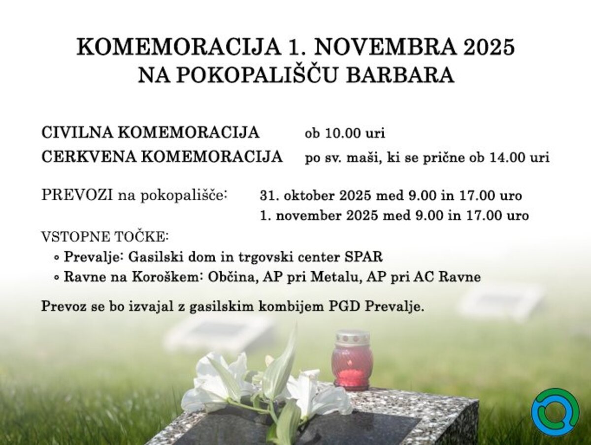 Obveščamo vas, da bomo med prihajajočimi prazniki organizirali brezplačne prevoze na Pokopališče Barbara iz Raven in Prevalj.