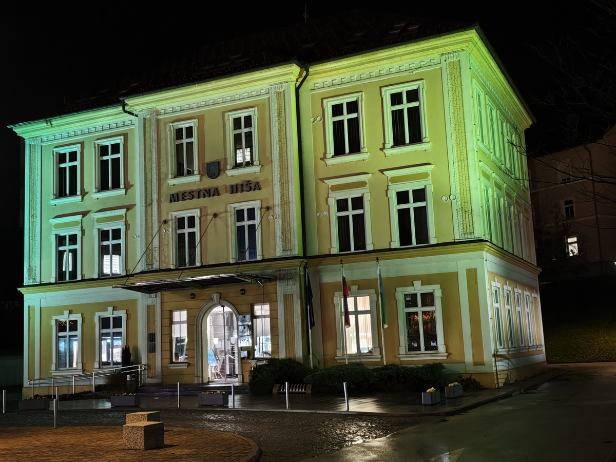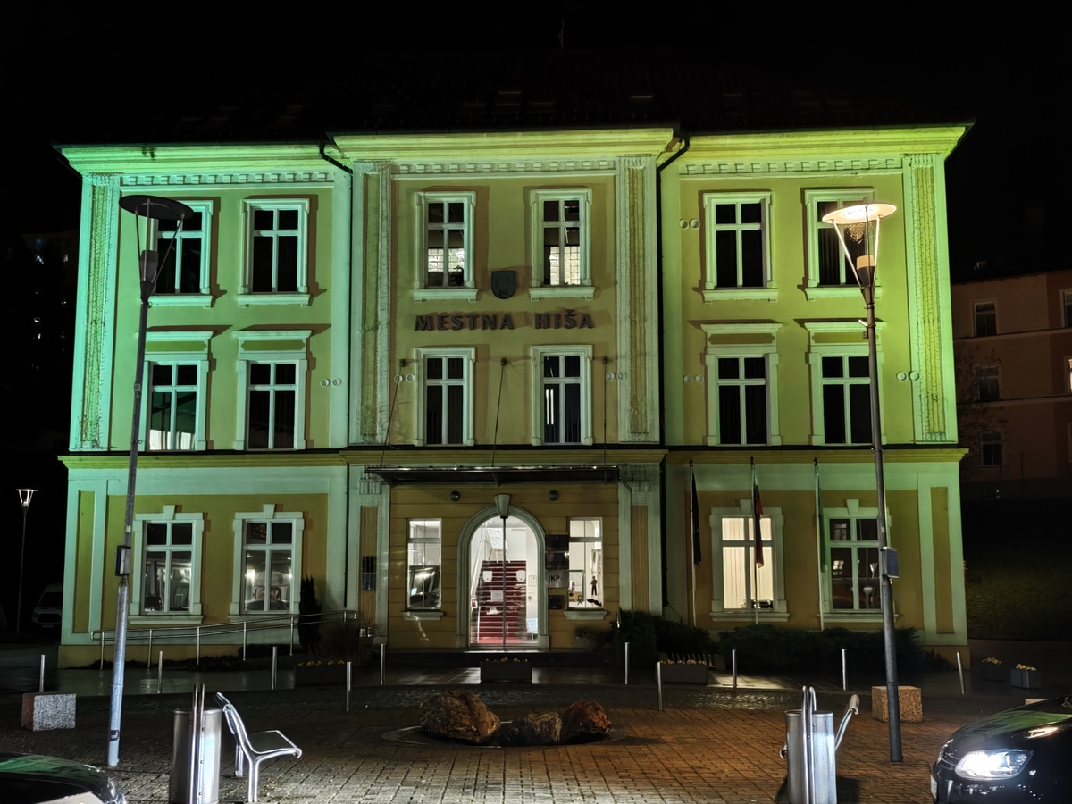 Na Ravnah na Koroškem smo se pridružili ozaveščanju in osvetli Mestno hišo Ravne v turkizni barvi